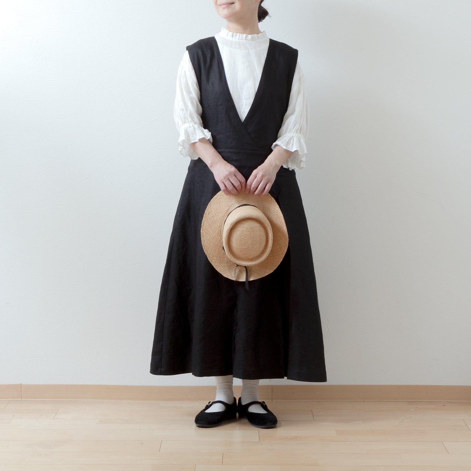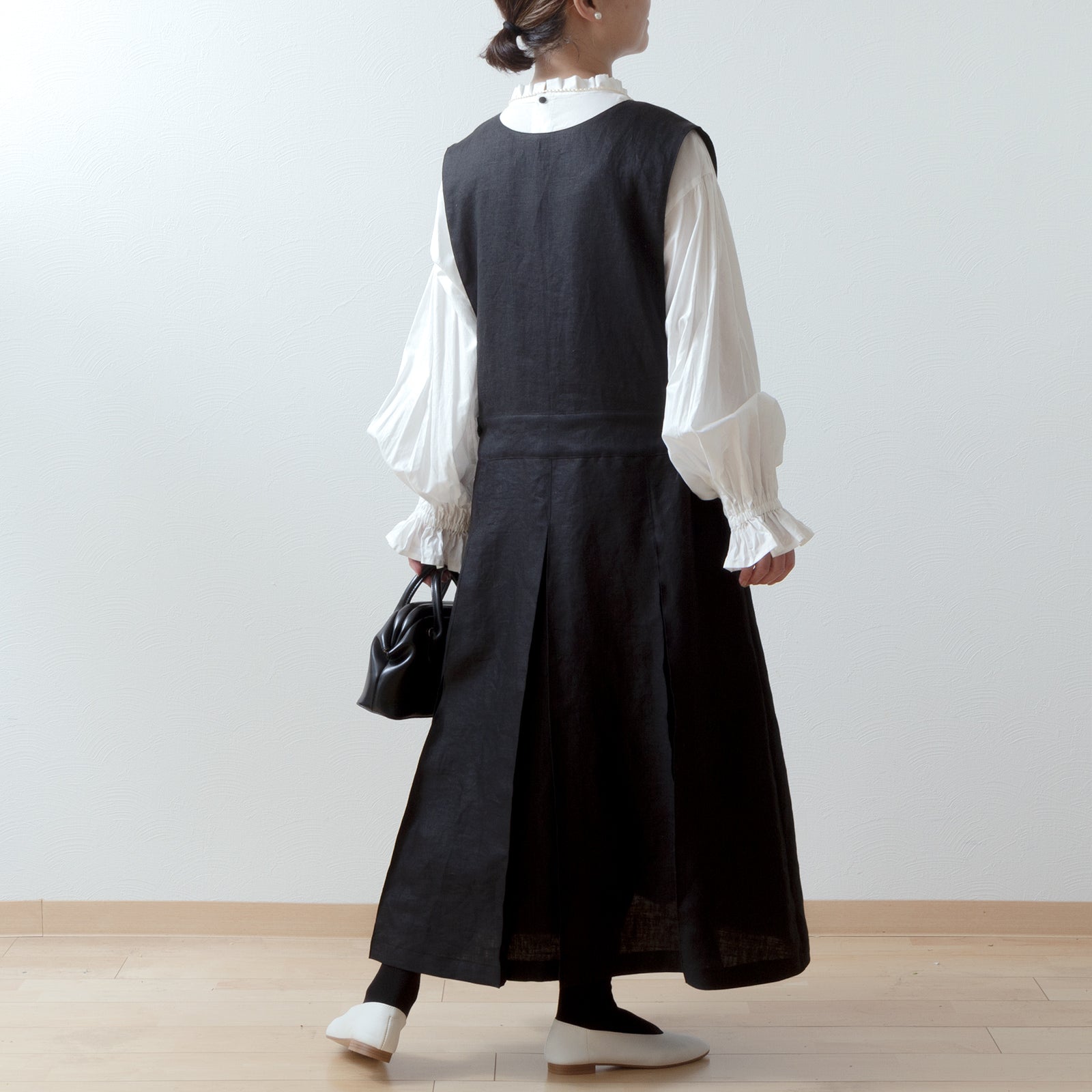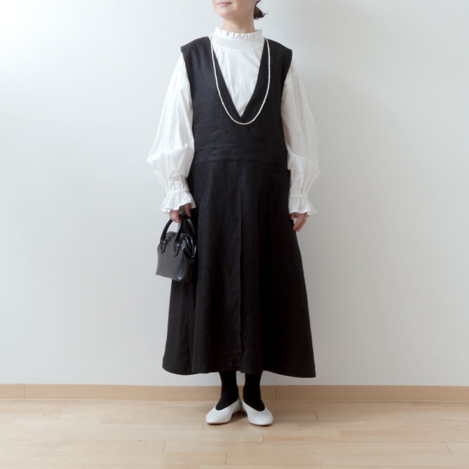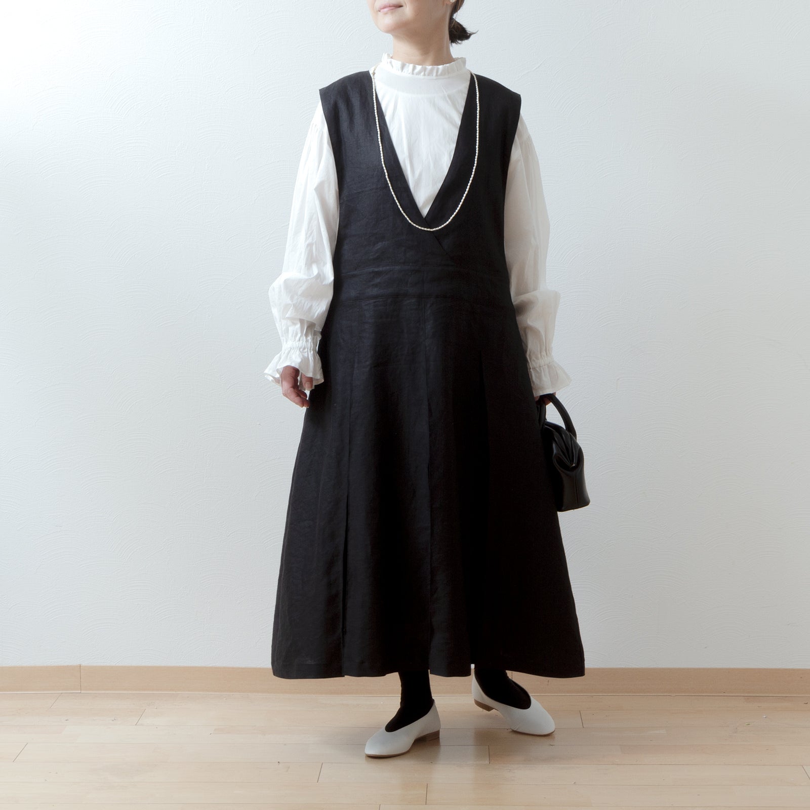受歡迎的冬季裹胸褶皺連身裙採用 Riprune 經典亞麻材料重新設計,同時保留了相同的設計。
