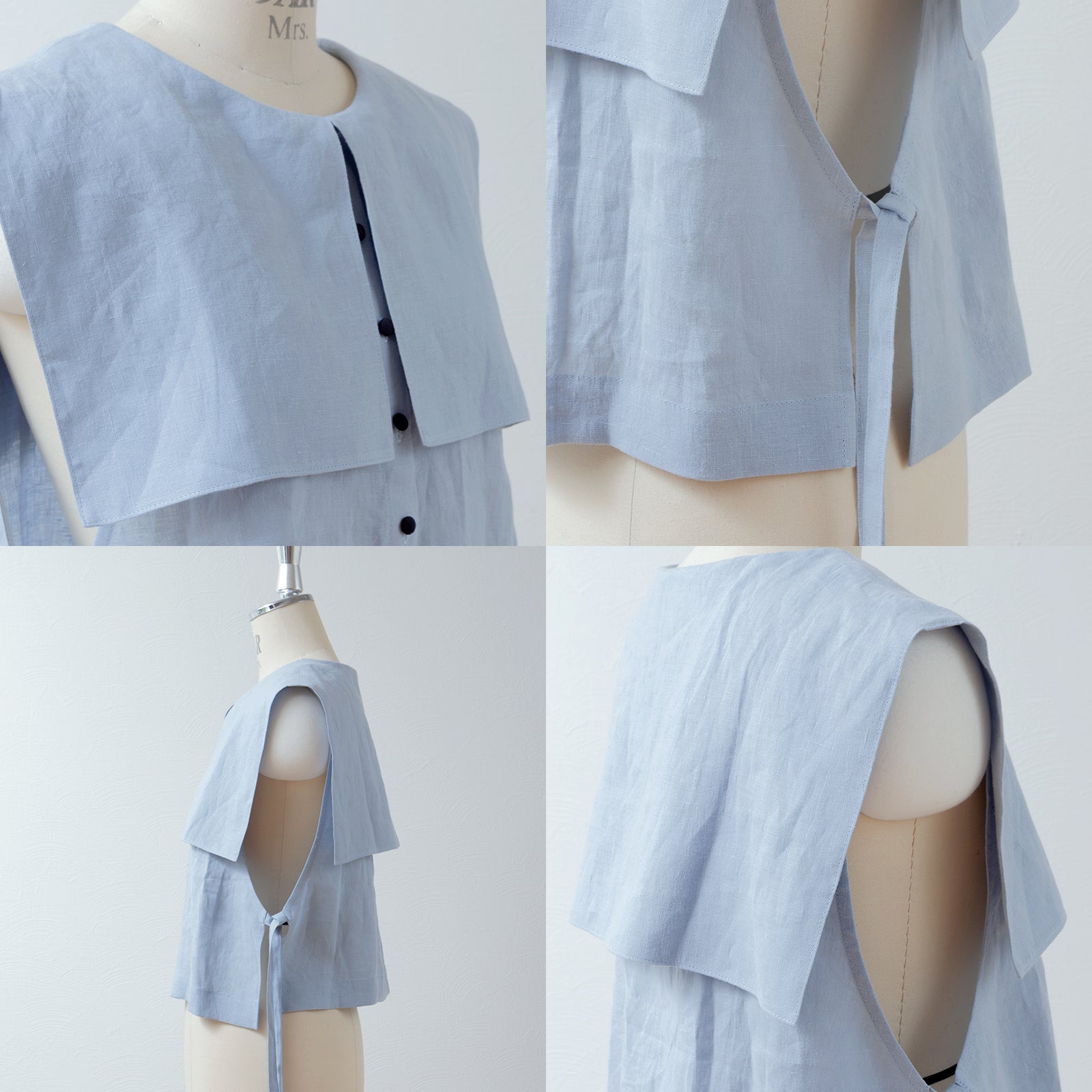 大領子容易顯得孩子氣,而這款方形領子則給人一種別緻、成熟的感覺。