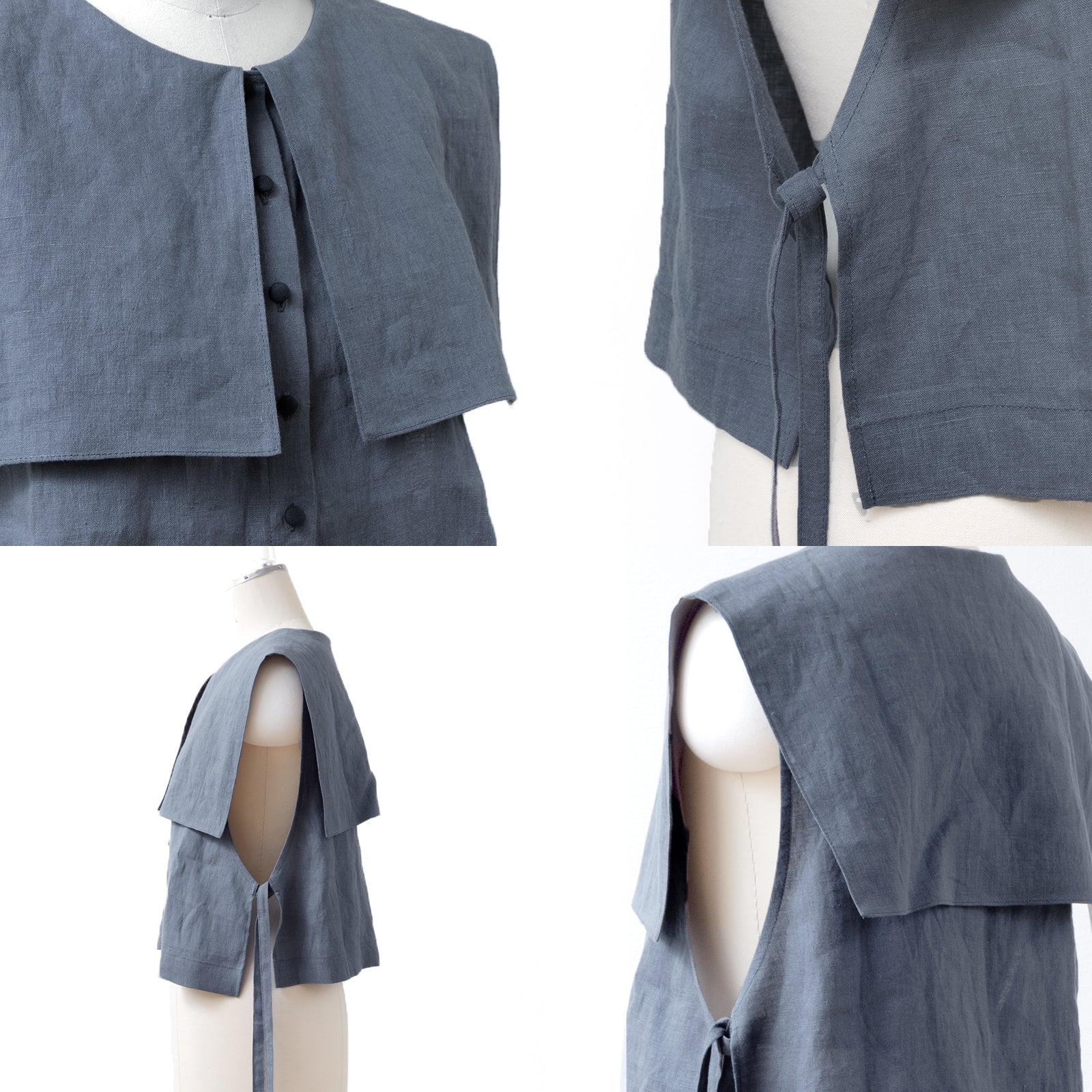 大領子容易顯得孩子氣,而這款方形領子則給人一種別緻、成熟的感覺。