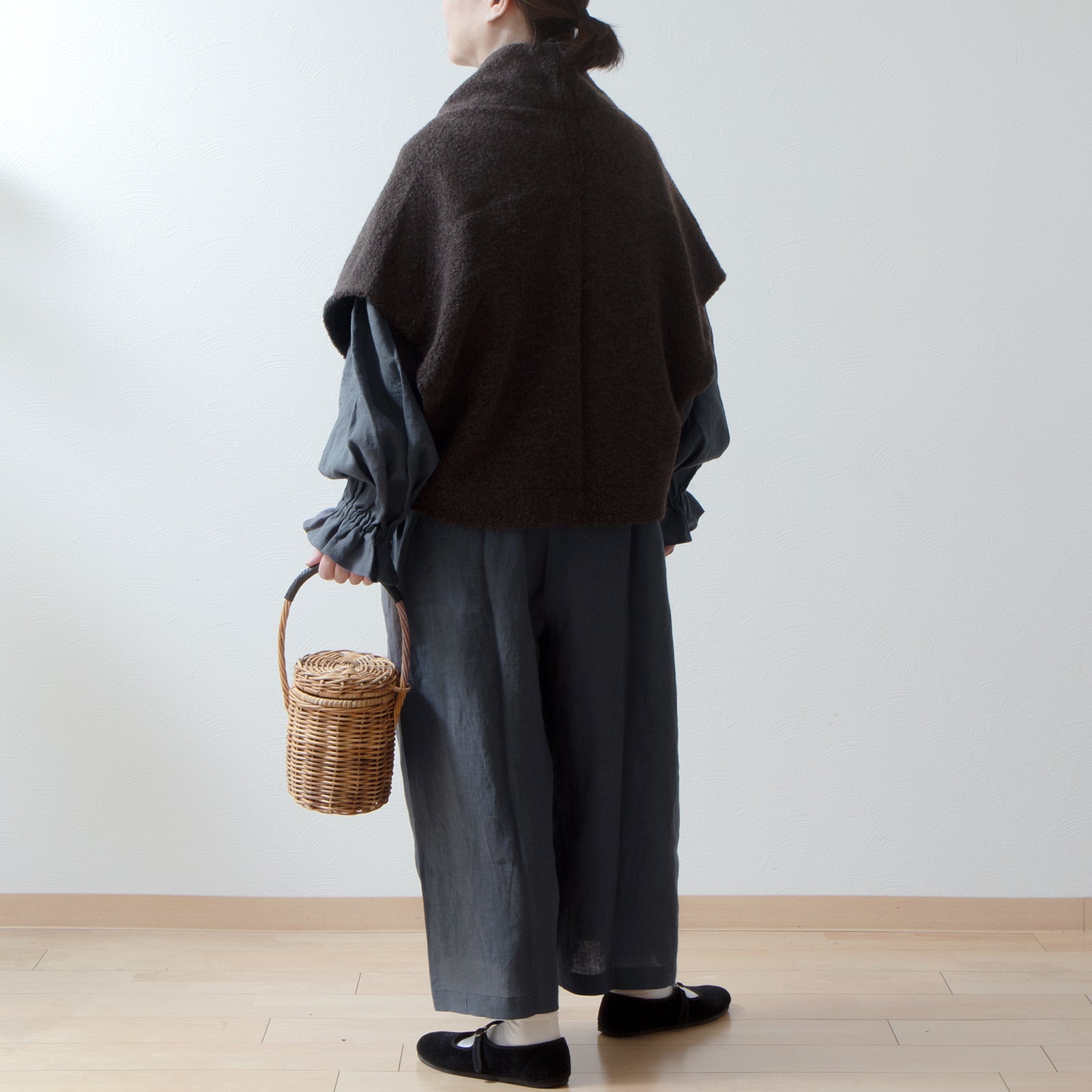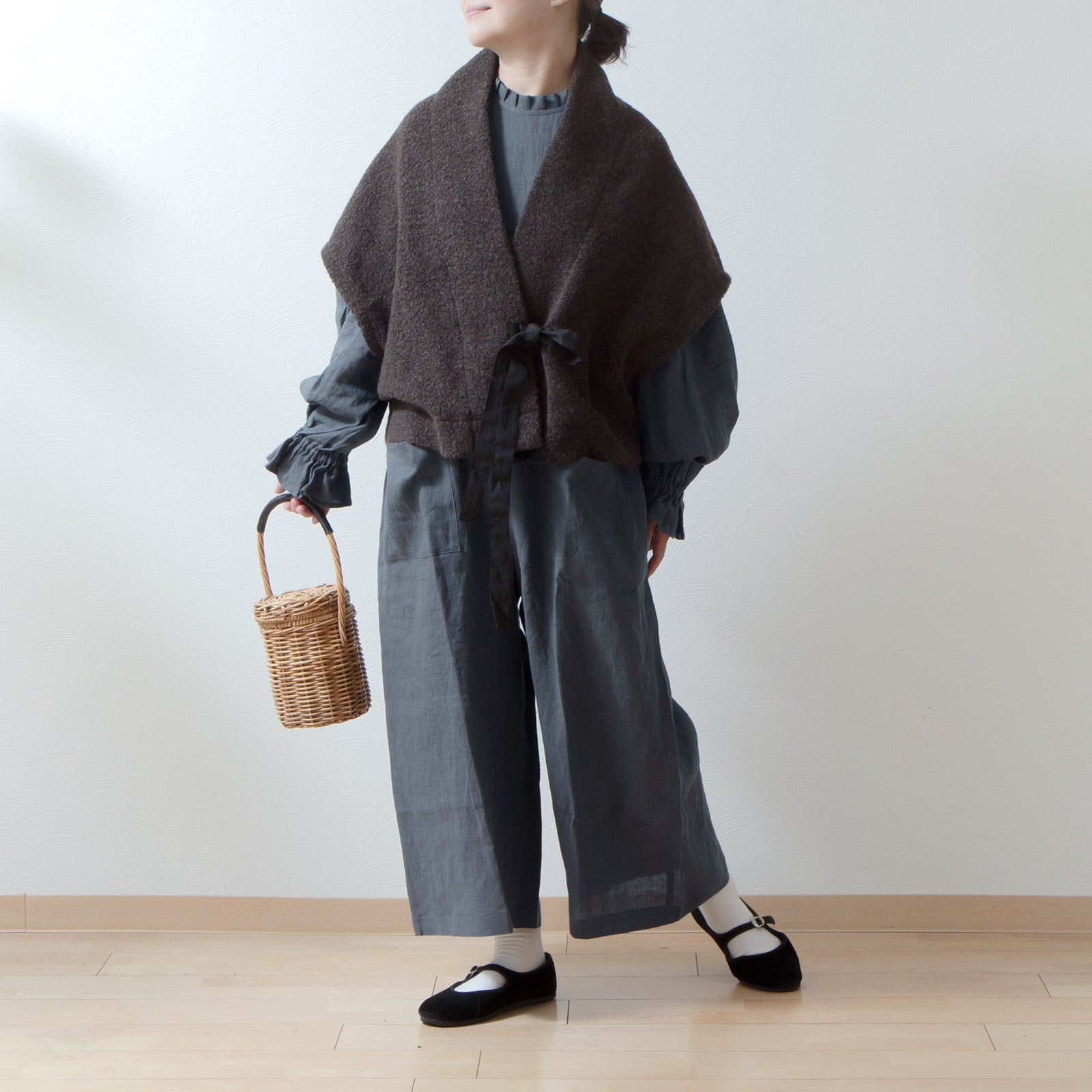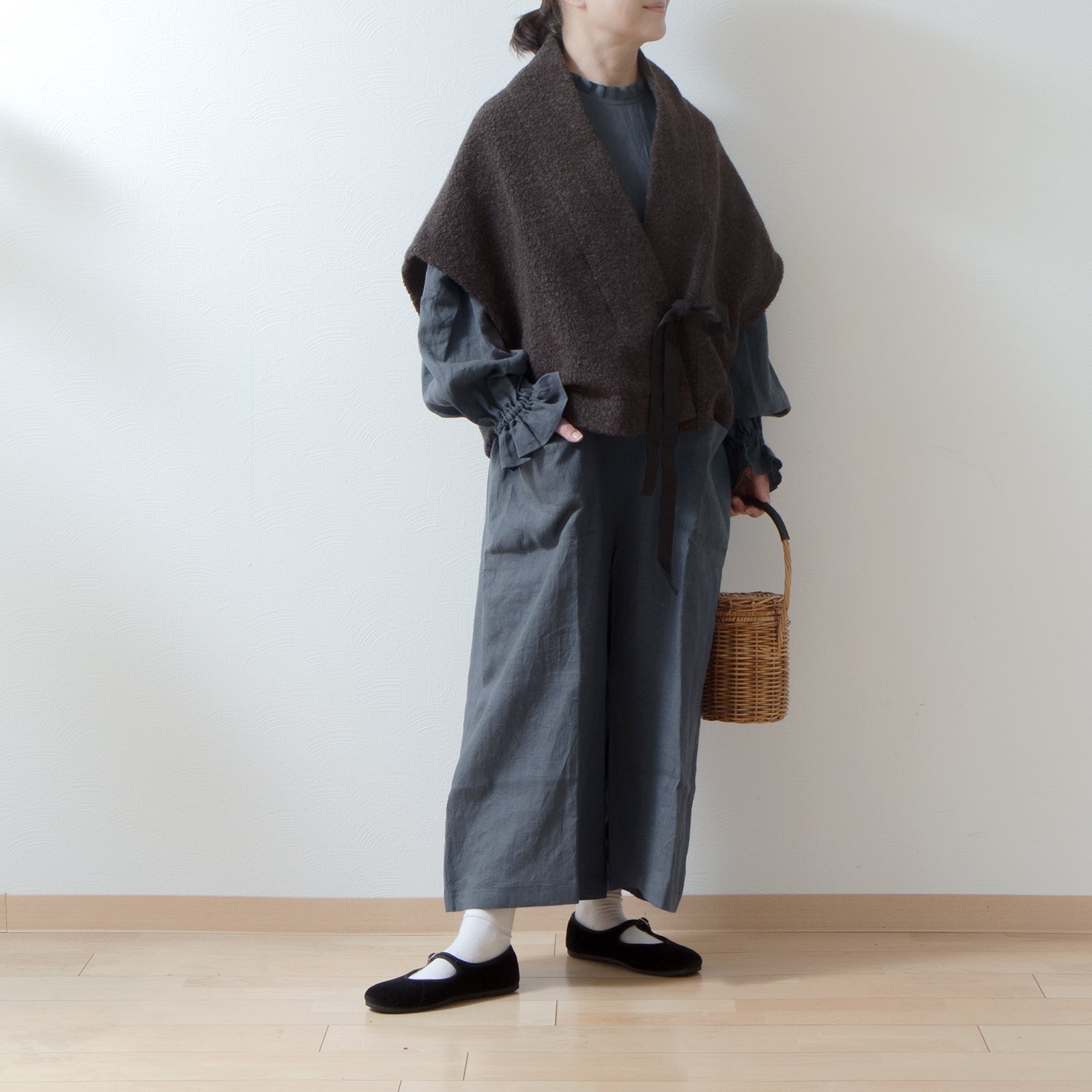 ・優質羊毛圍巾披肩背心配緞帶/深棕色
