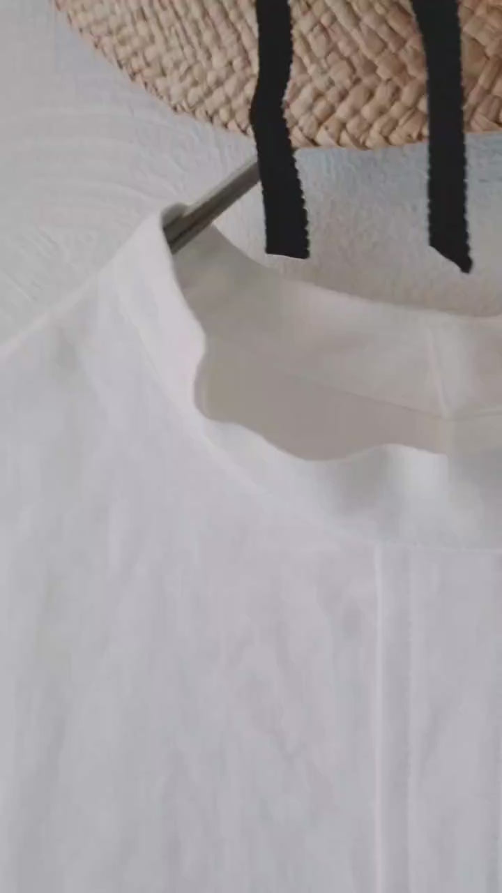 亞麻 A 字形連身裙,方形軛設計。