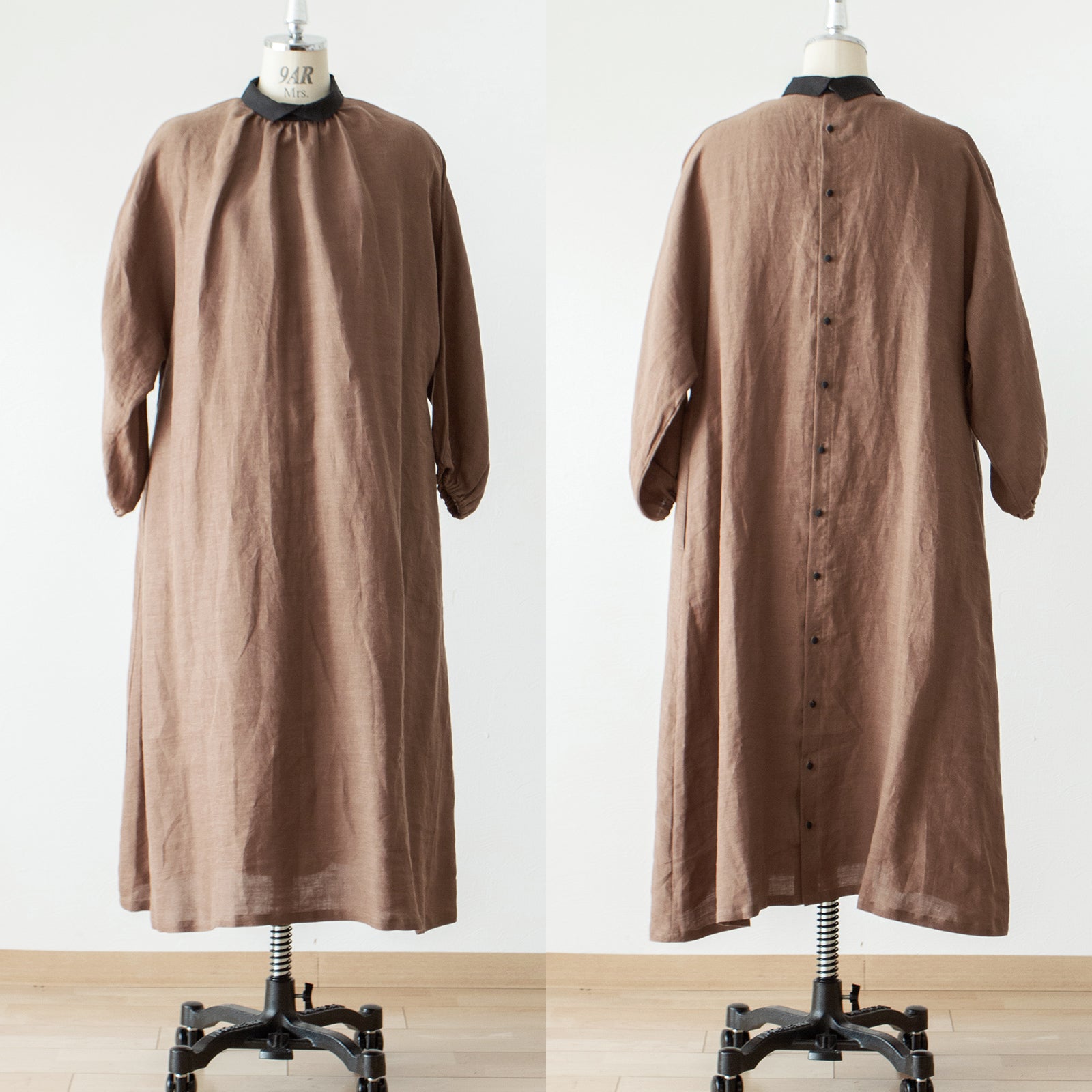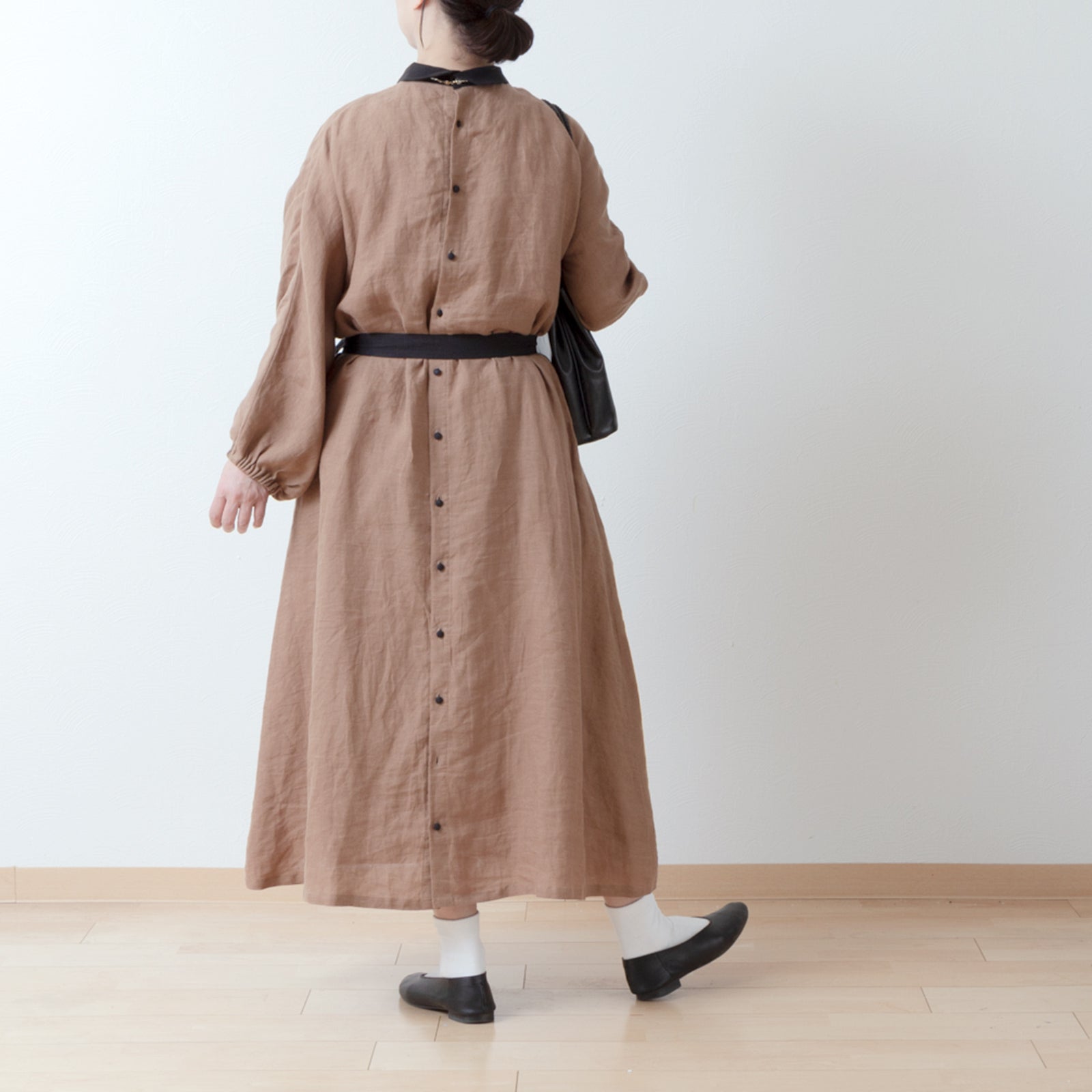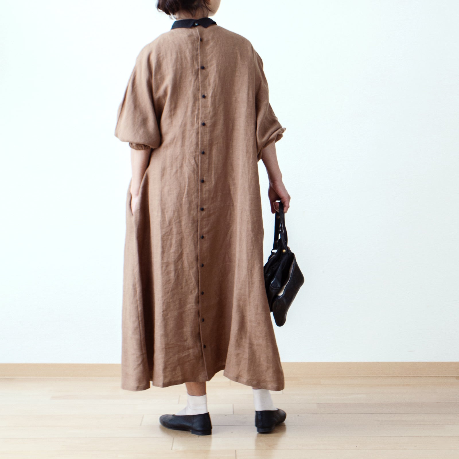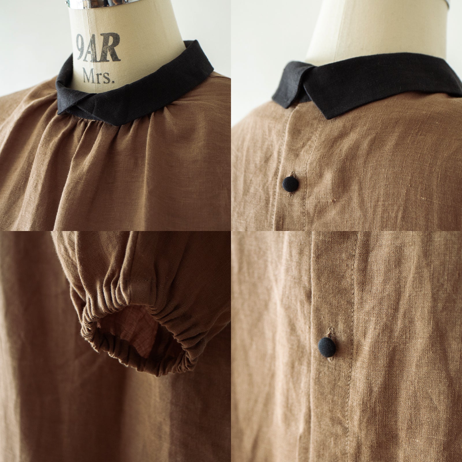 優雅成熟可愛的牧師領,背面有紐扣,袖子寬大,採用法國亞麻 A 字裙/駝色牧師