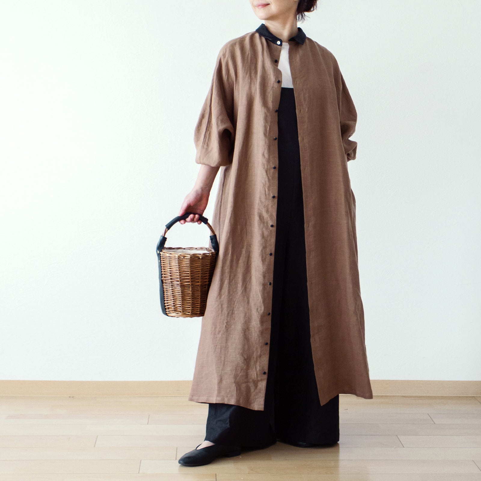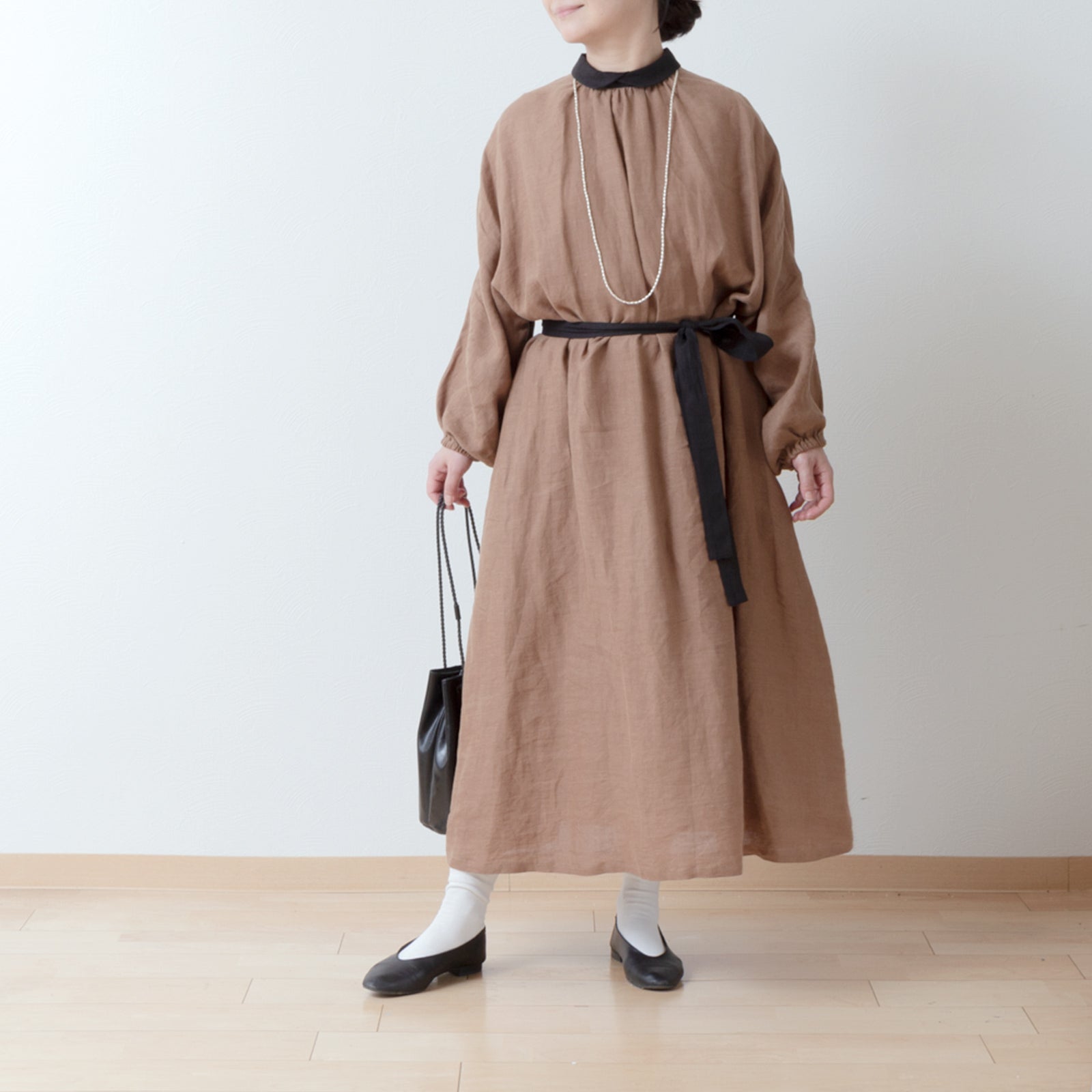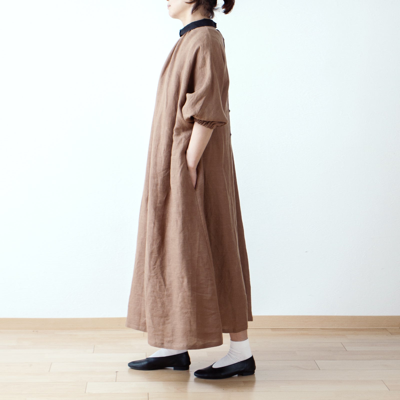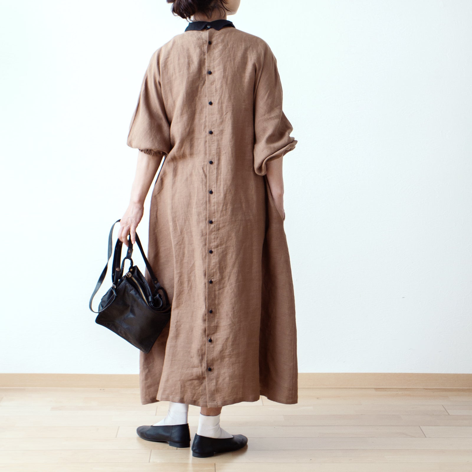 優雅成熟可愛的牧師領,背面有紐扣,袖子寬大,採用法國亞麻 A 字裙/駝色牧師