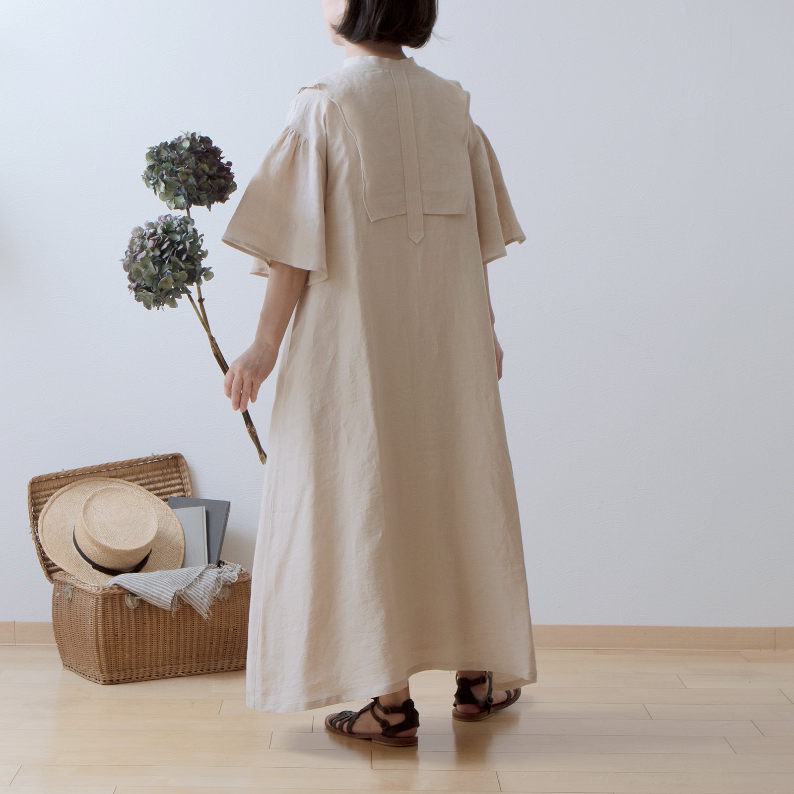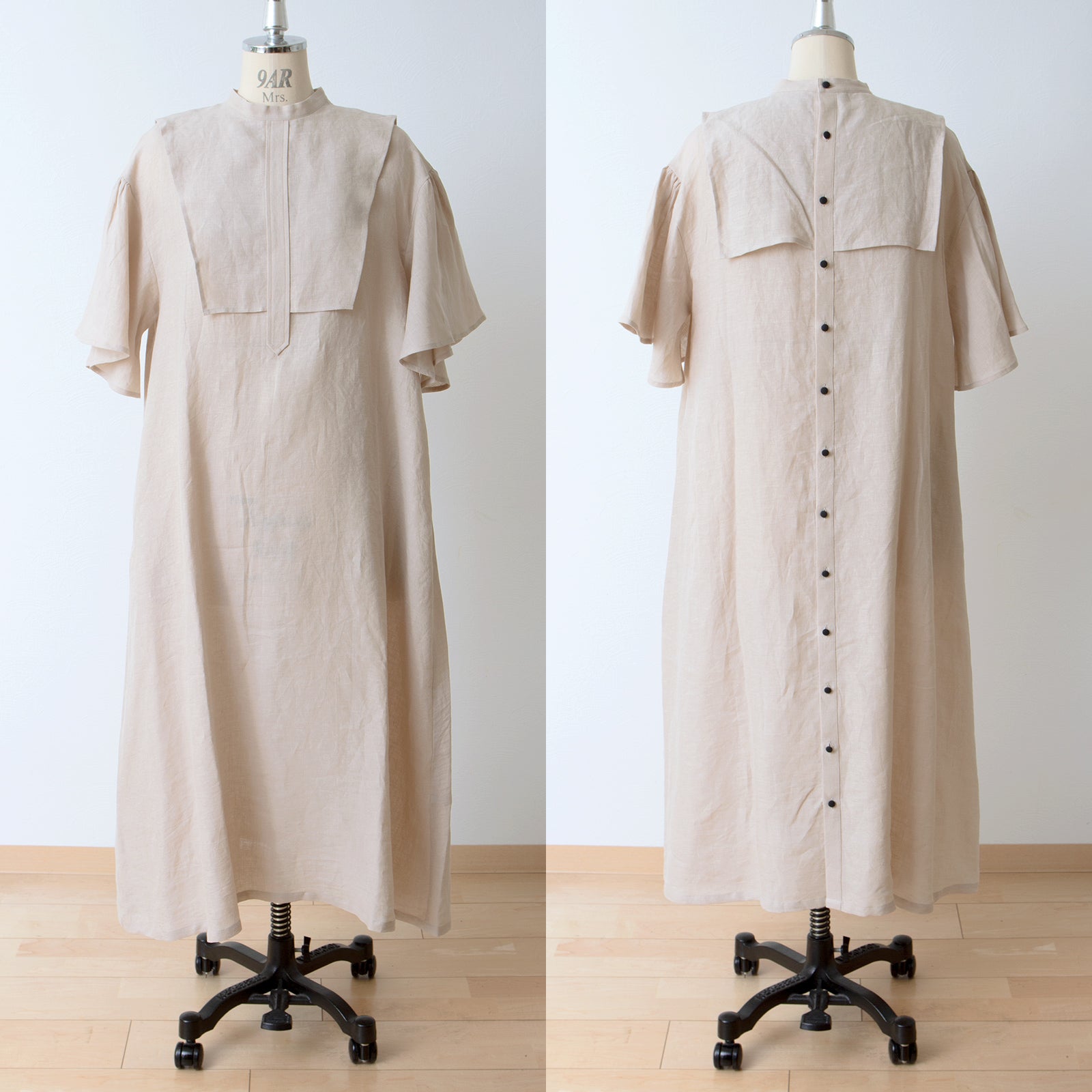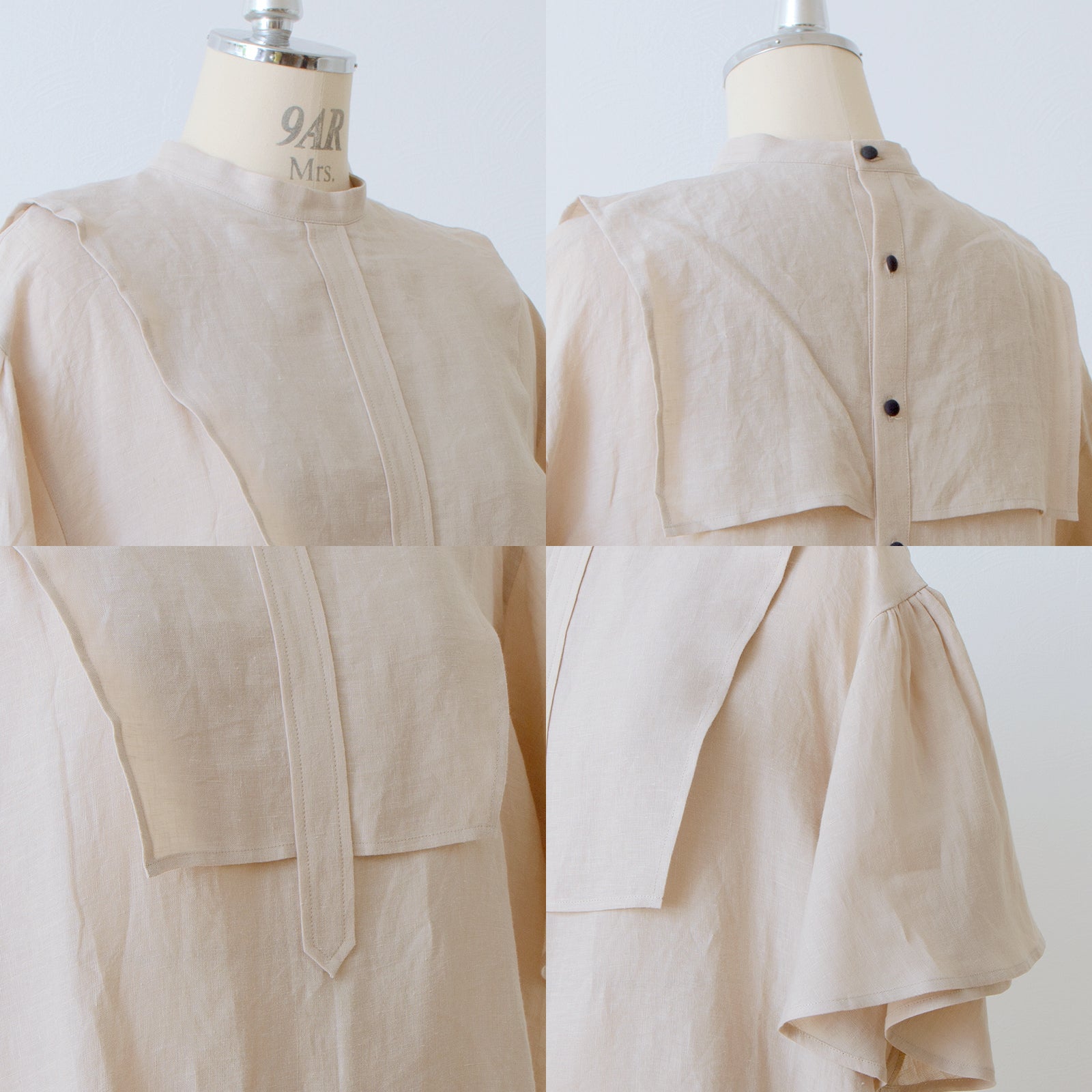 設計的特點是後背有紐扣閉合,但也可以前後互換穿著。