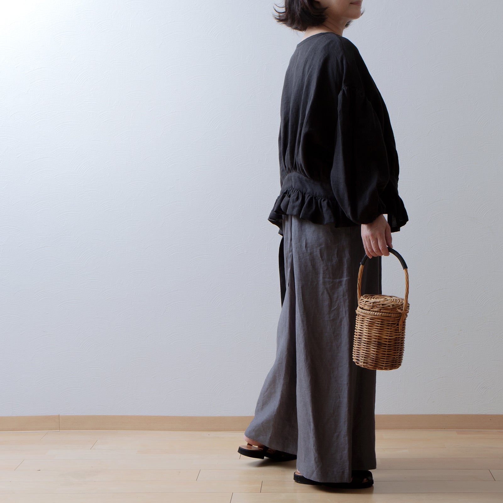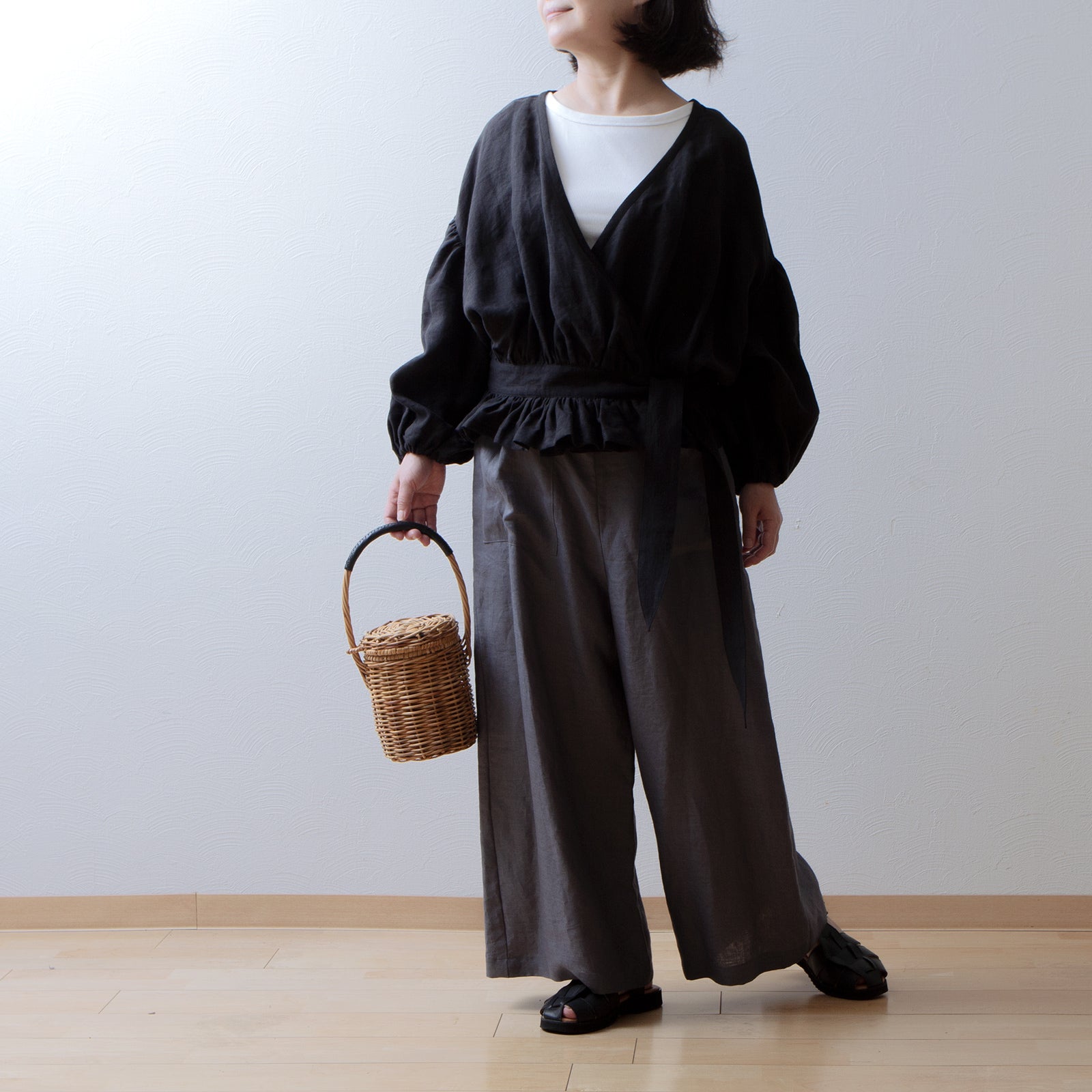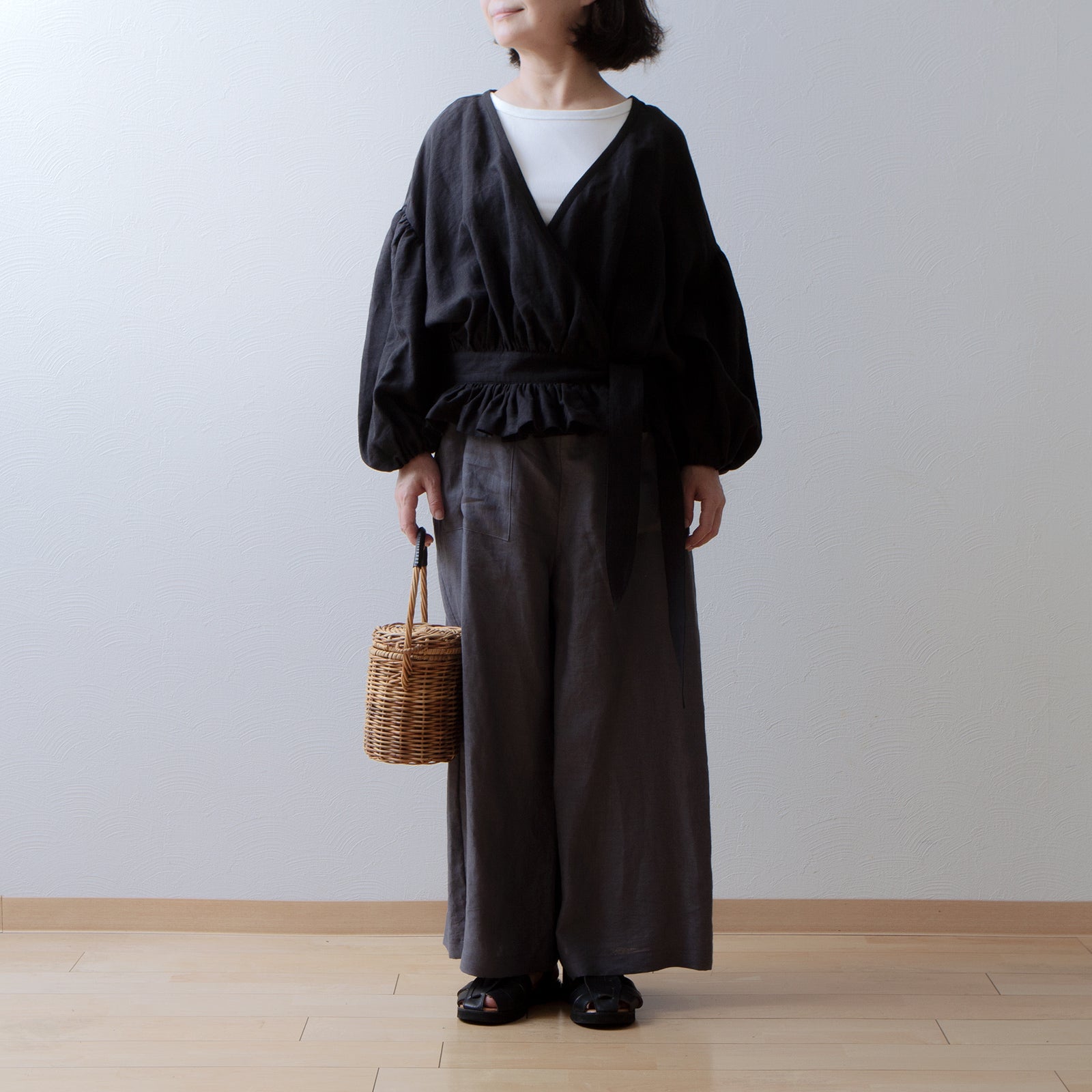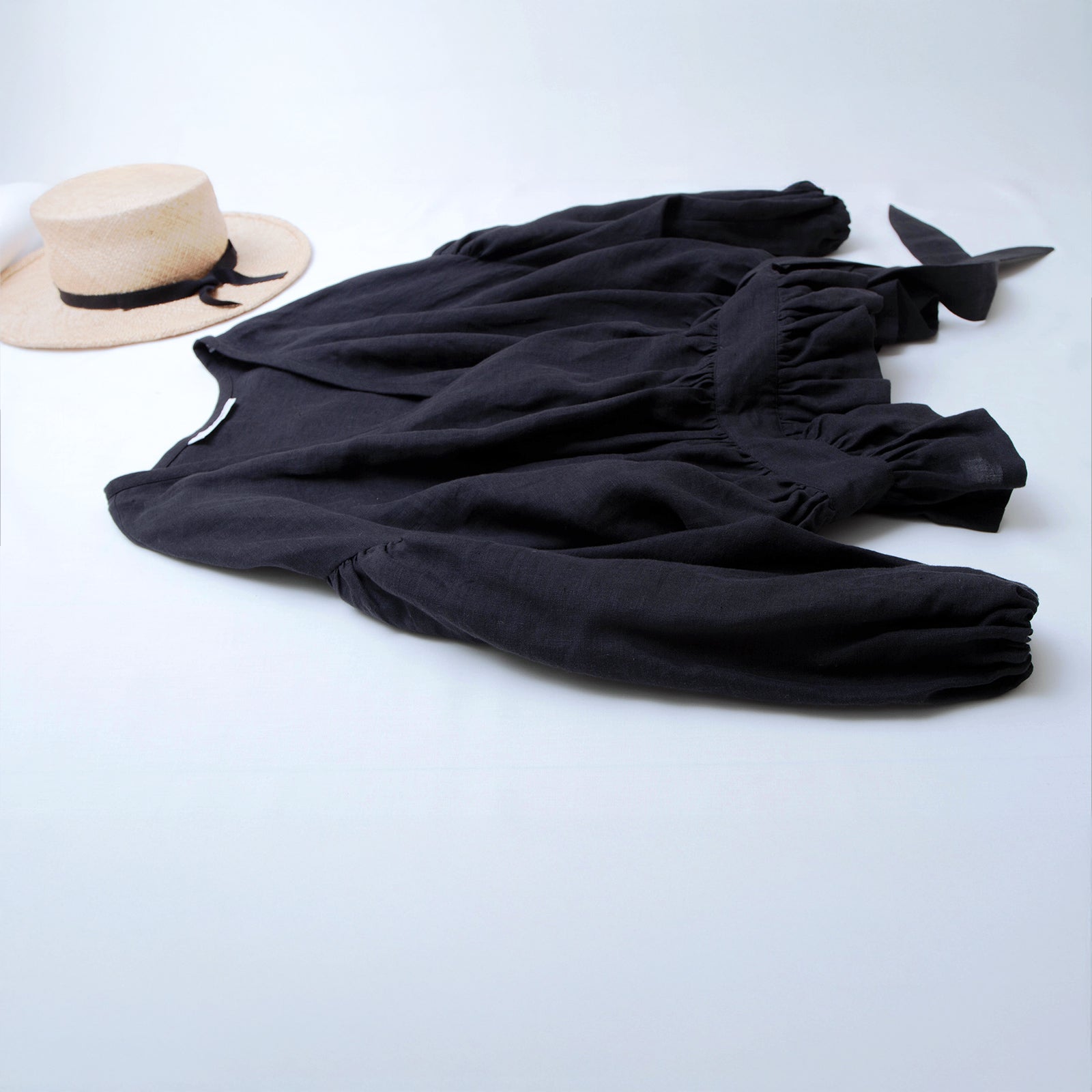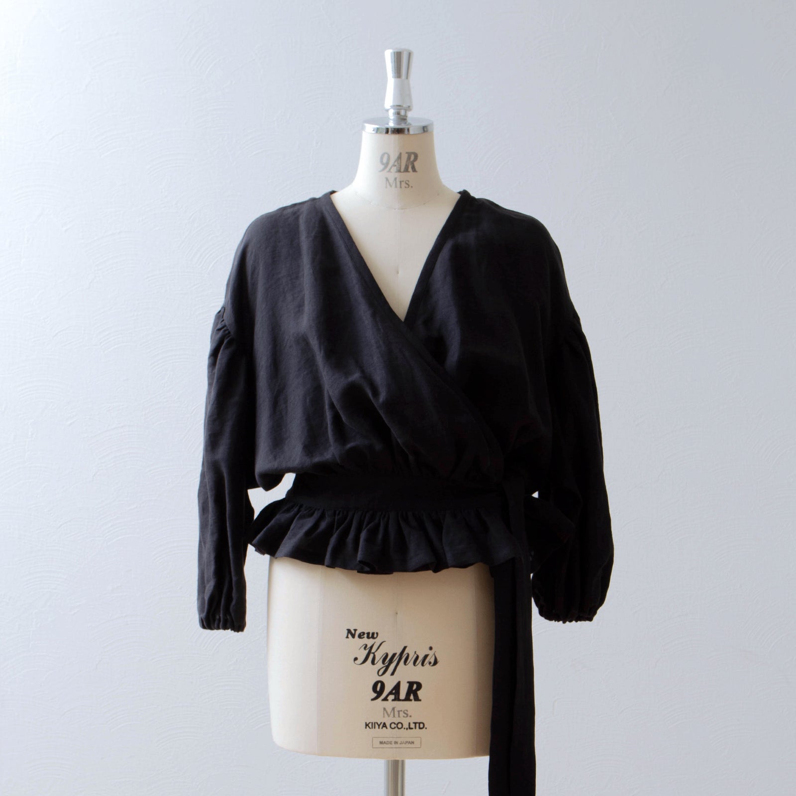 Cache-coeur 荷葉邊亞麻短上衣/黑色
