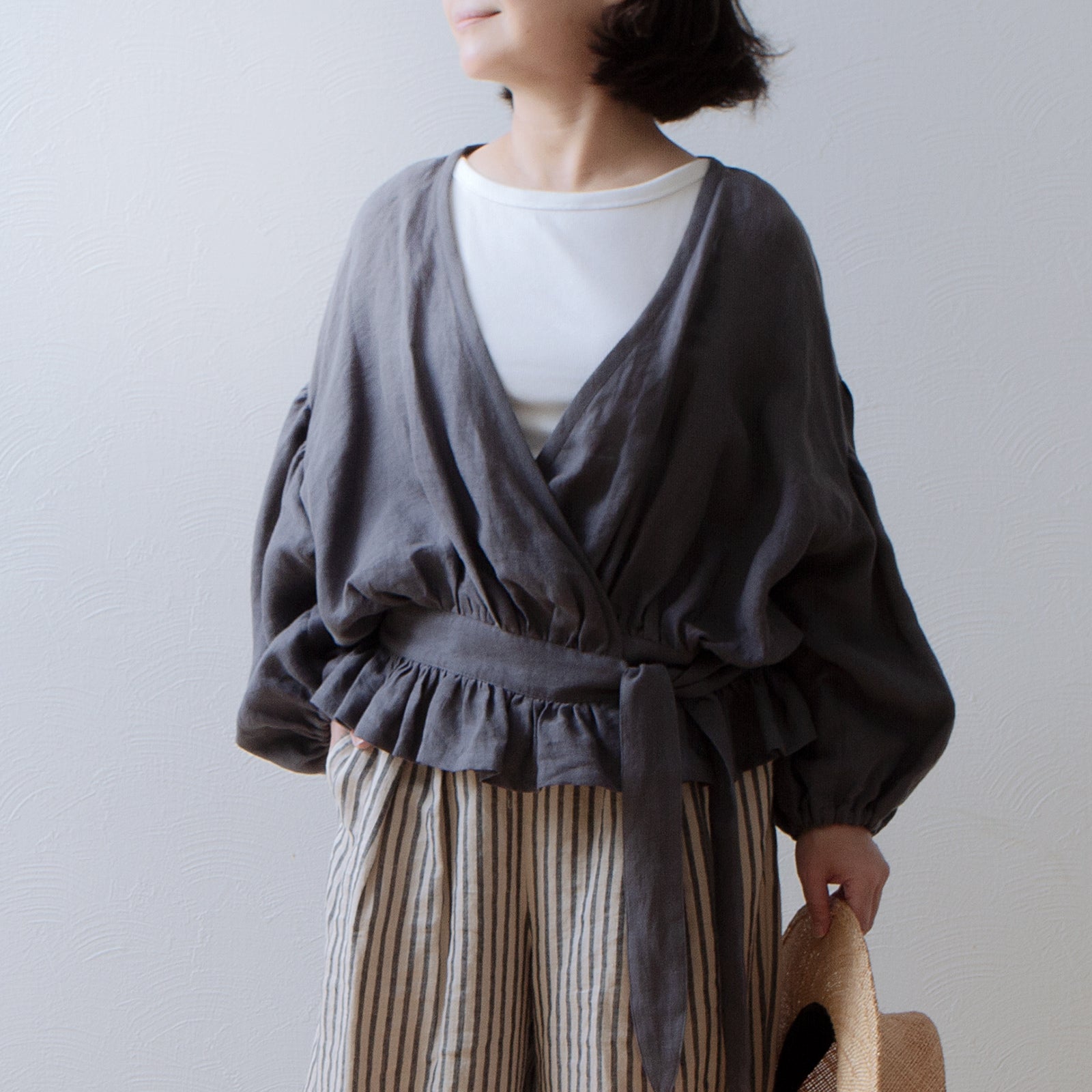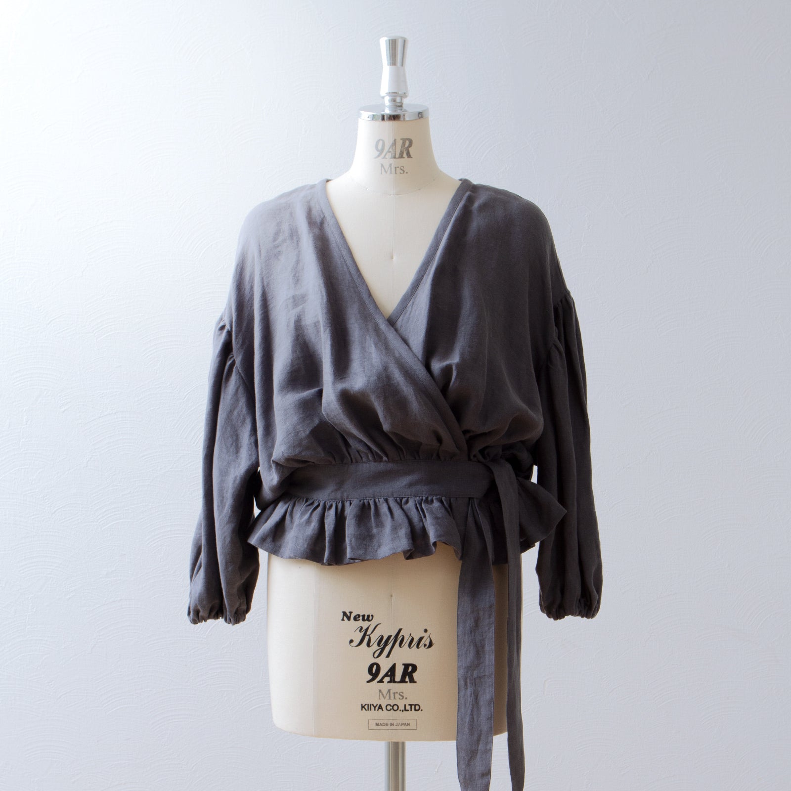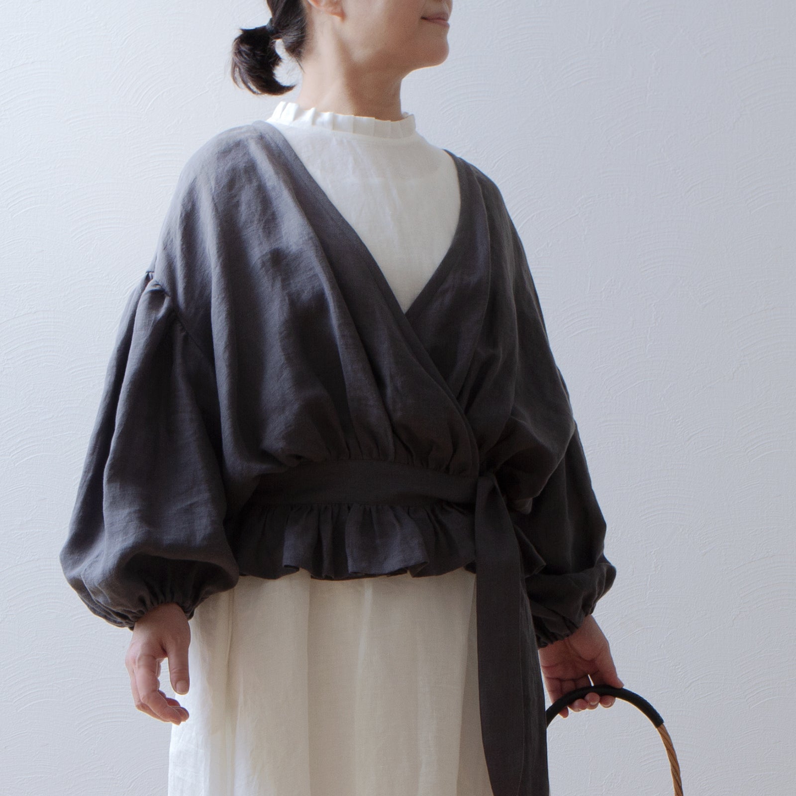Cache-coeur 荷葉邊亞麻短上衣/灰色