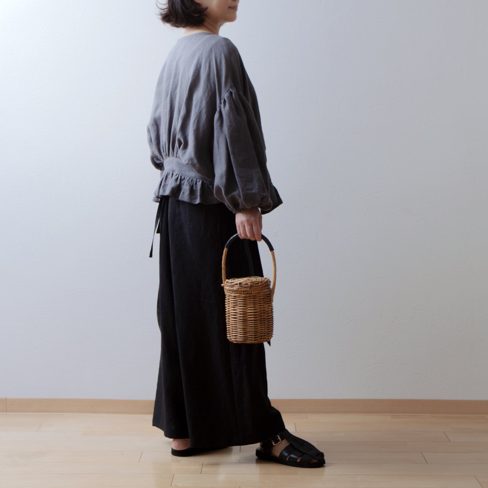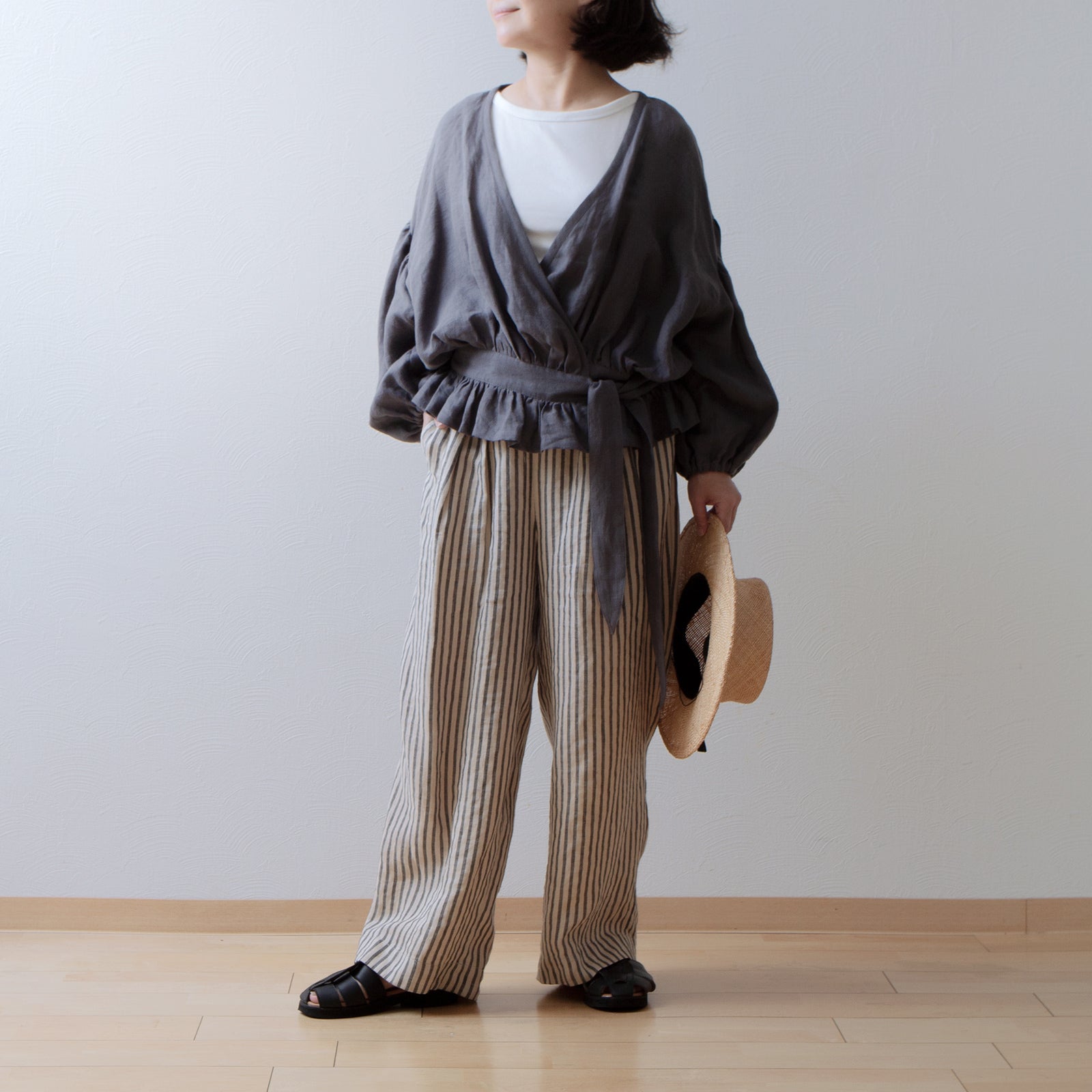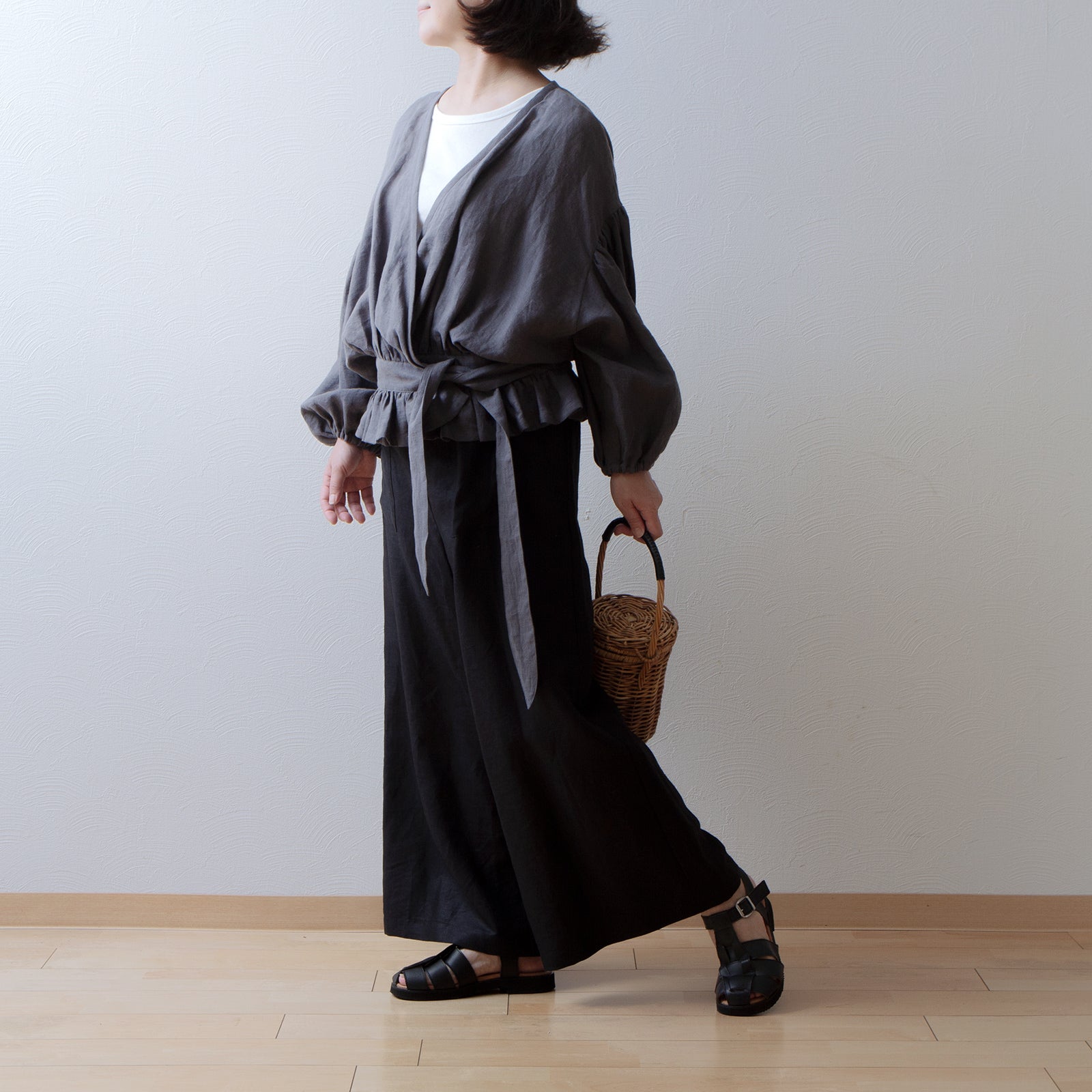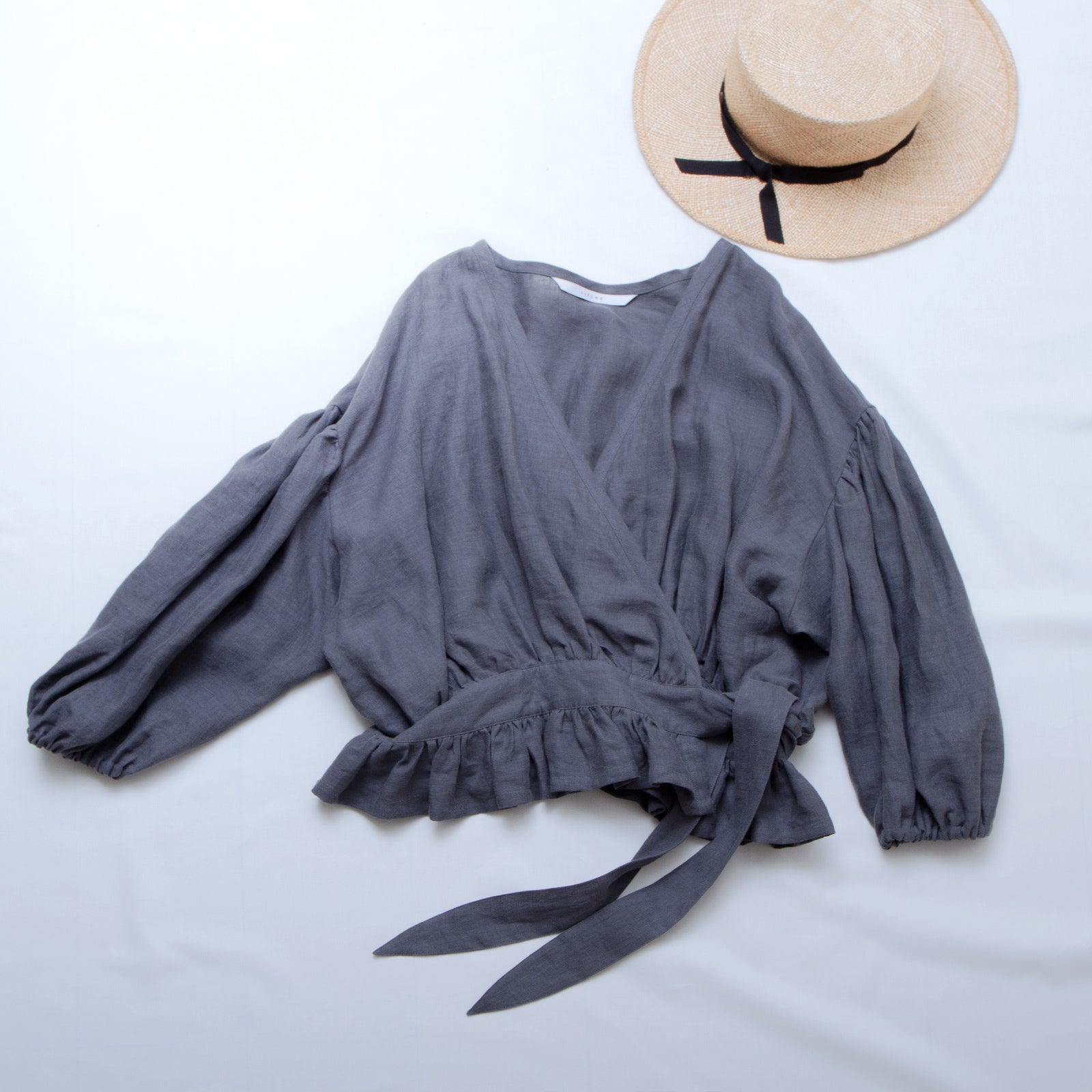 Cache-coeur 荷葉邊亞麻短上衣/灰色