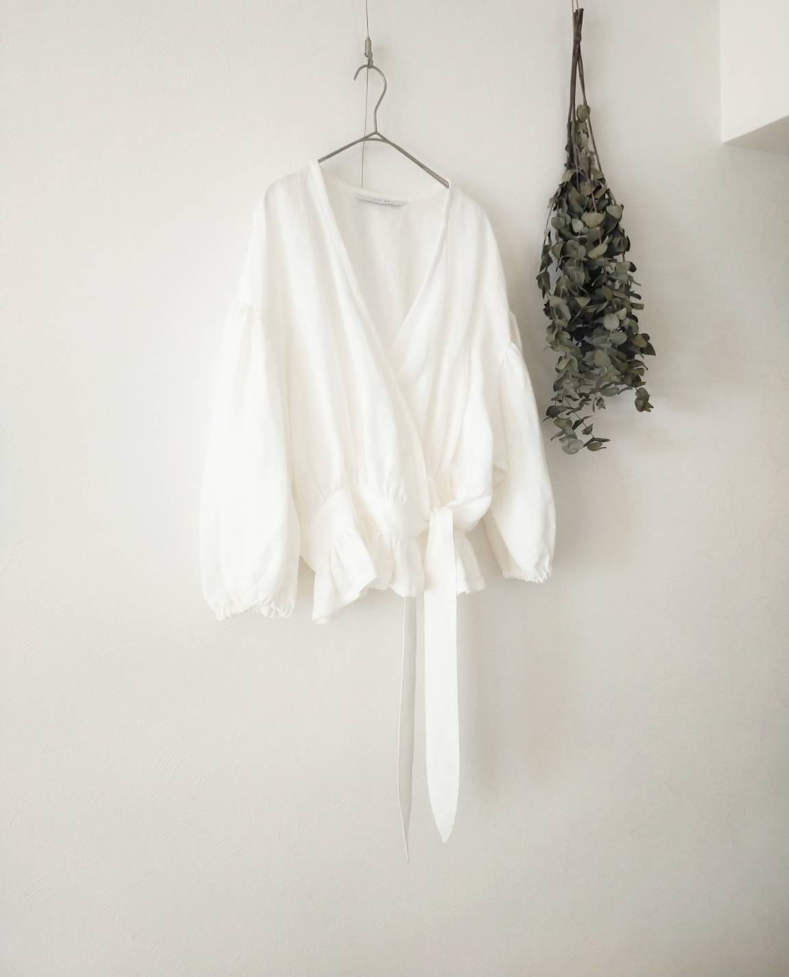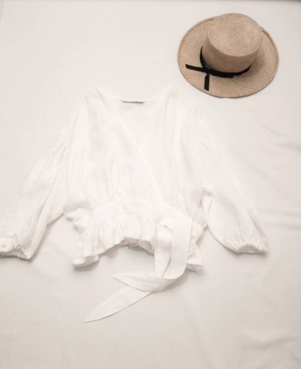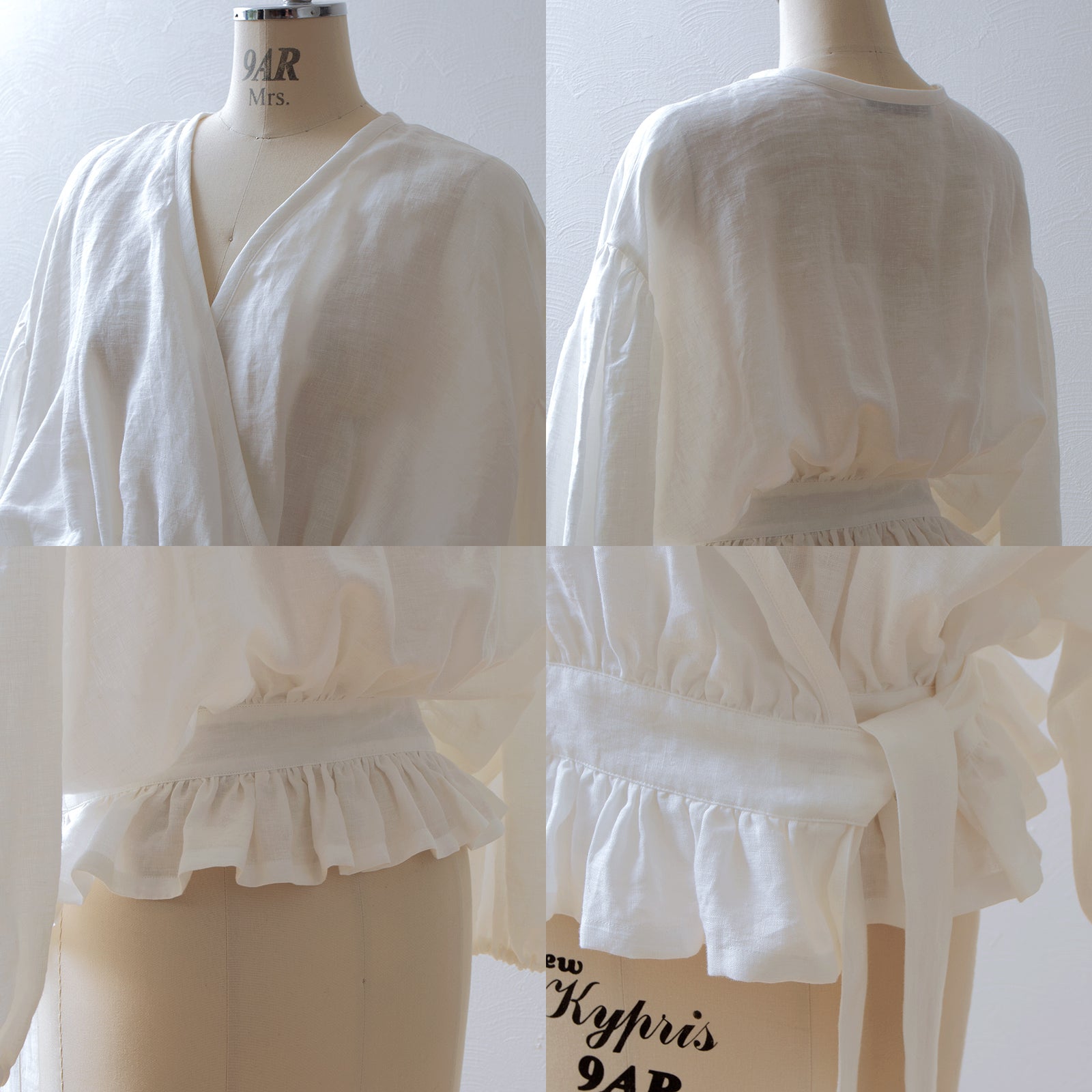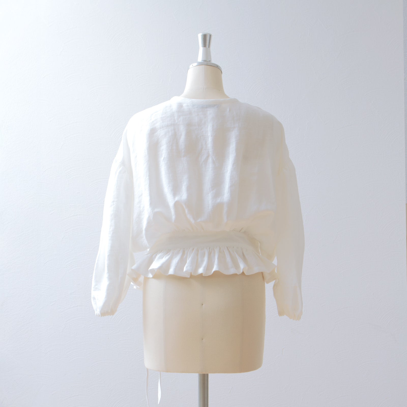 Cache-coeur 荷葉邊亞麻短上衣/米白色