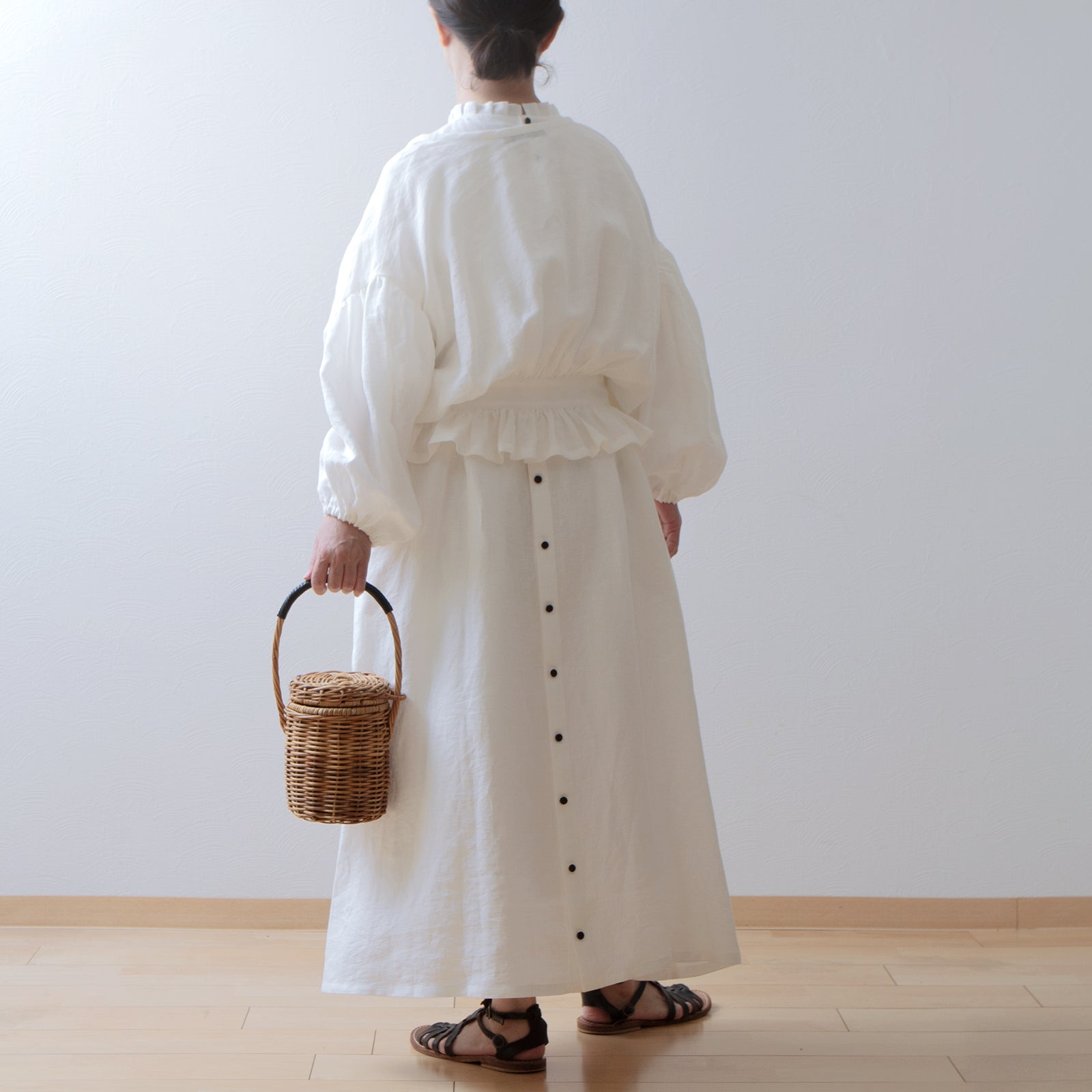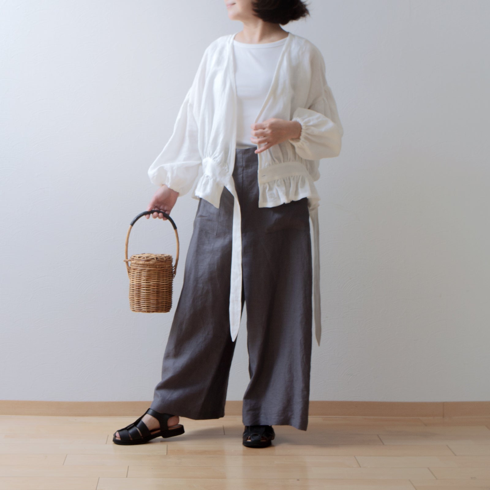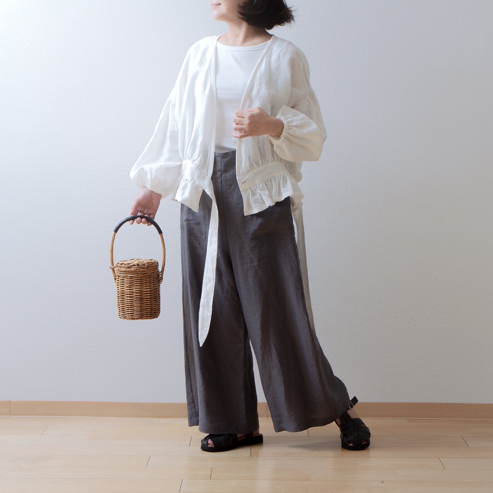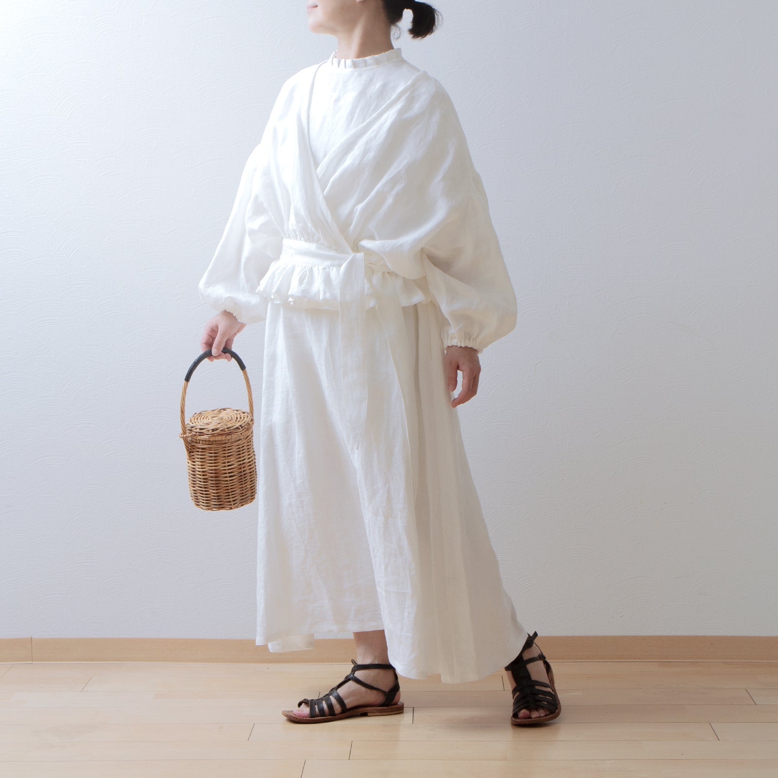 搭配相同材質的亞麻連身裙,打造一套完整的服裝,並享受適合季節的分層風格。