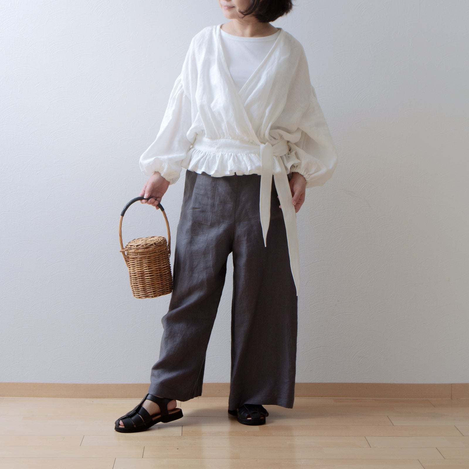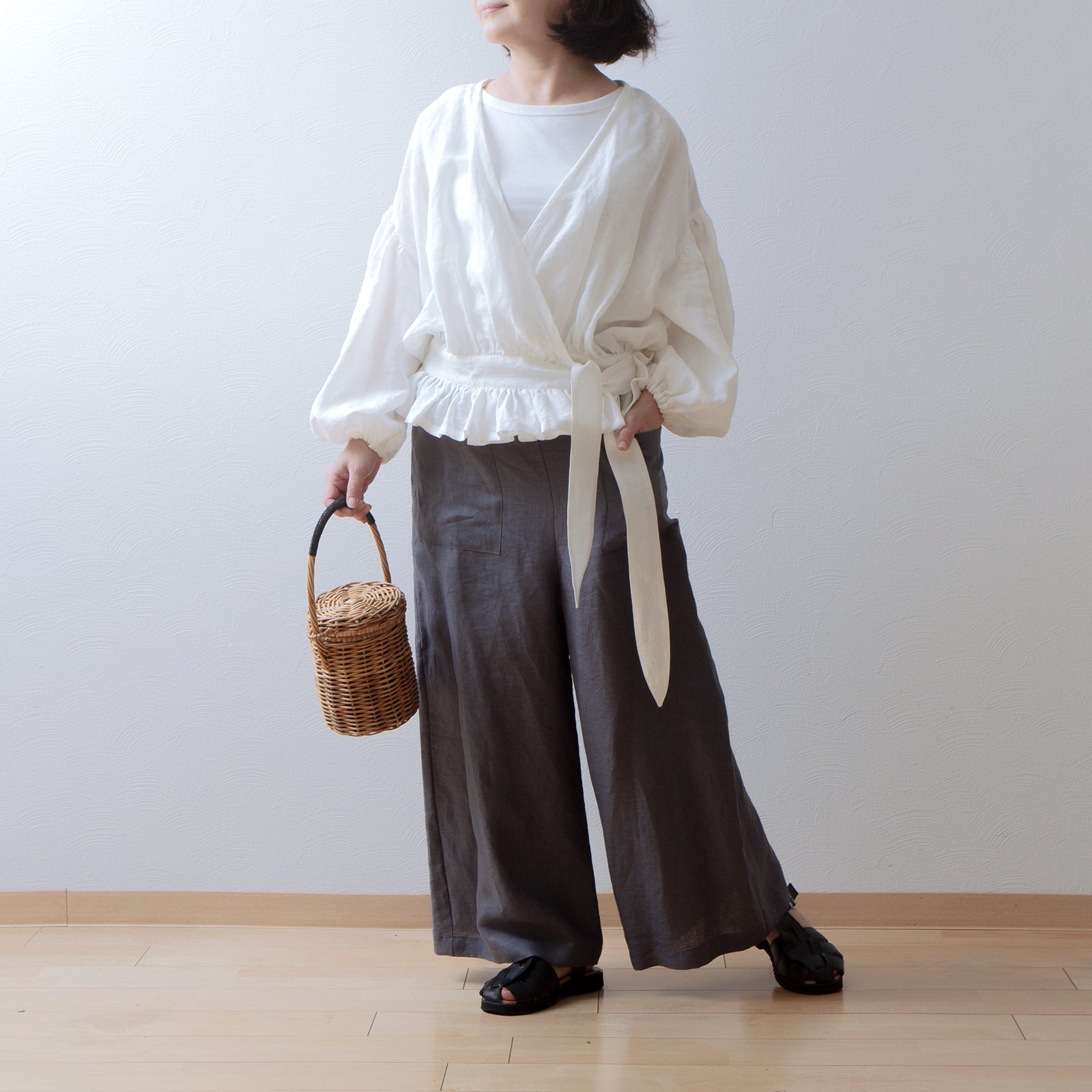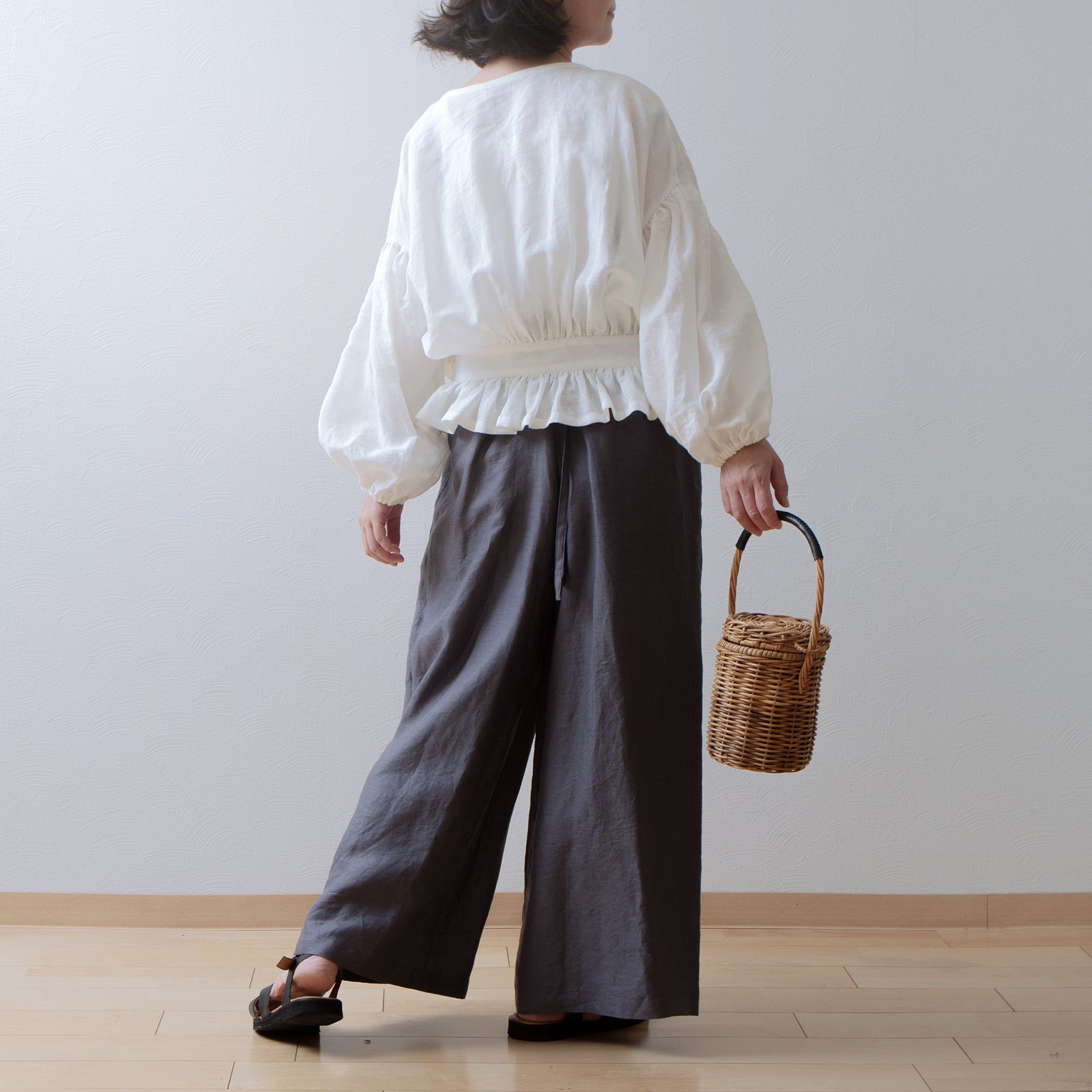 吊帶寬亞麻褲/灰色