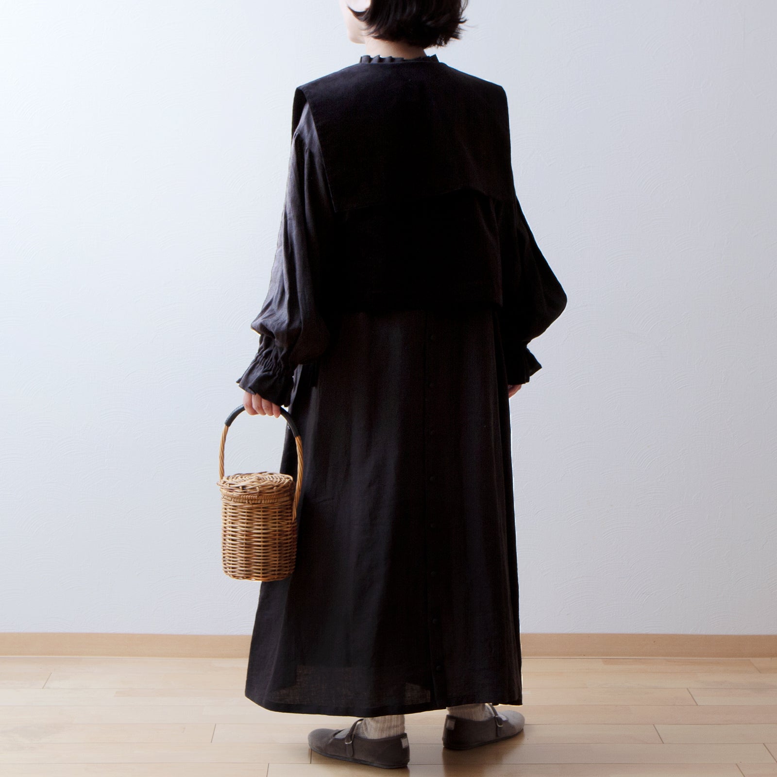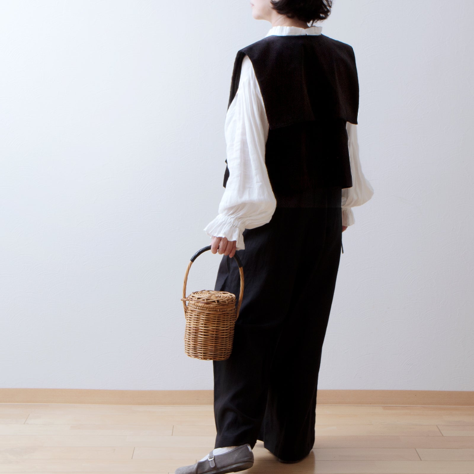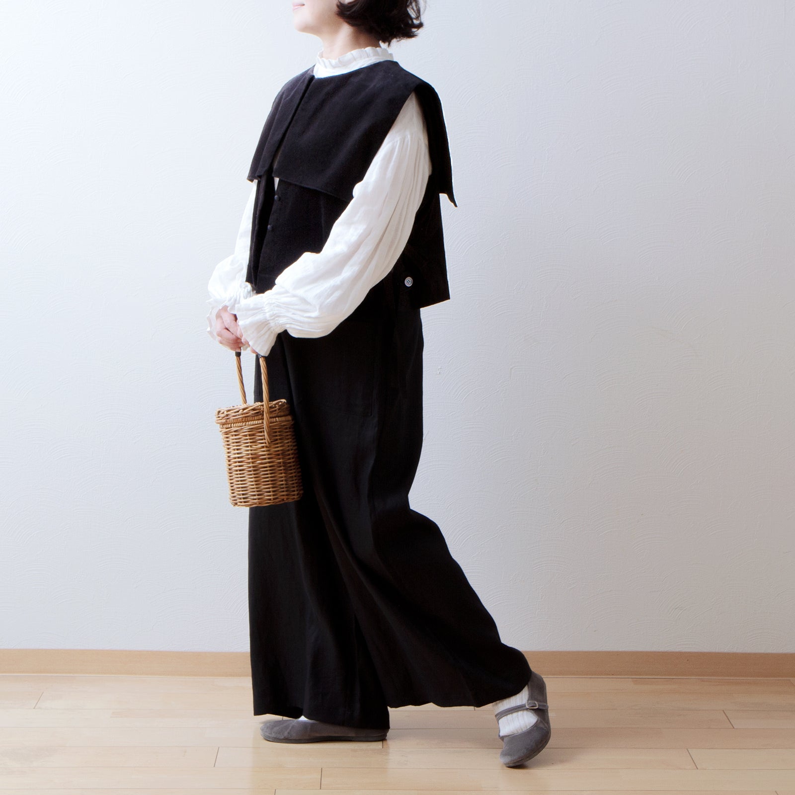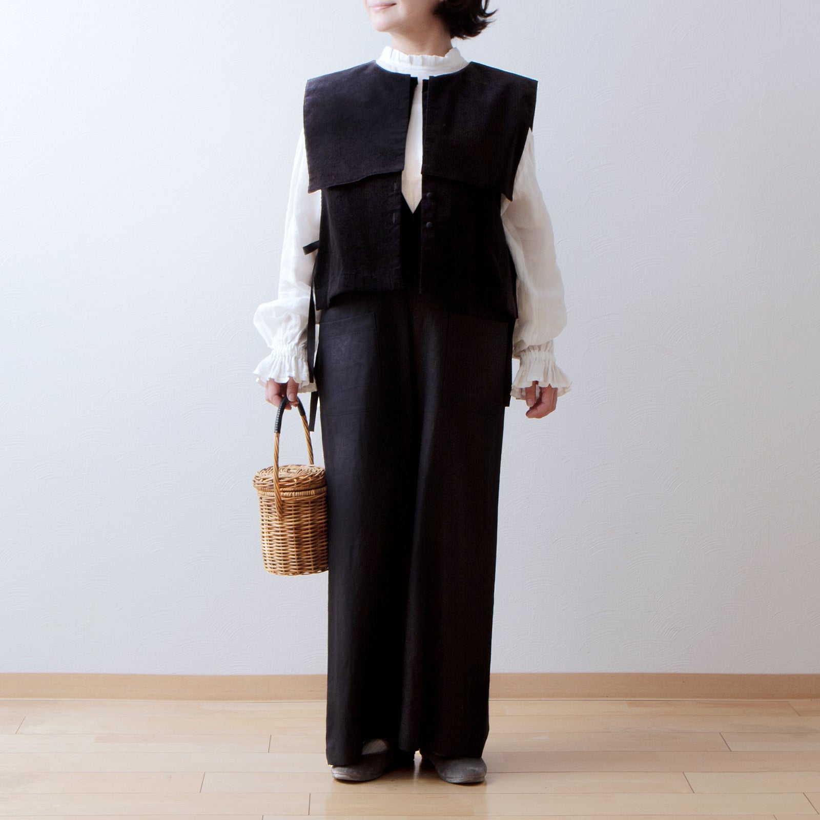 亞麻方領短背心