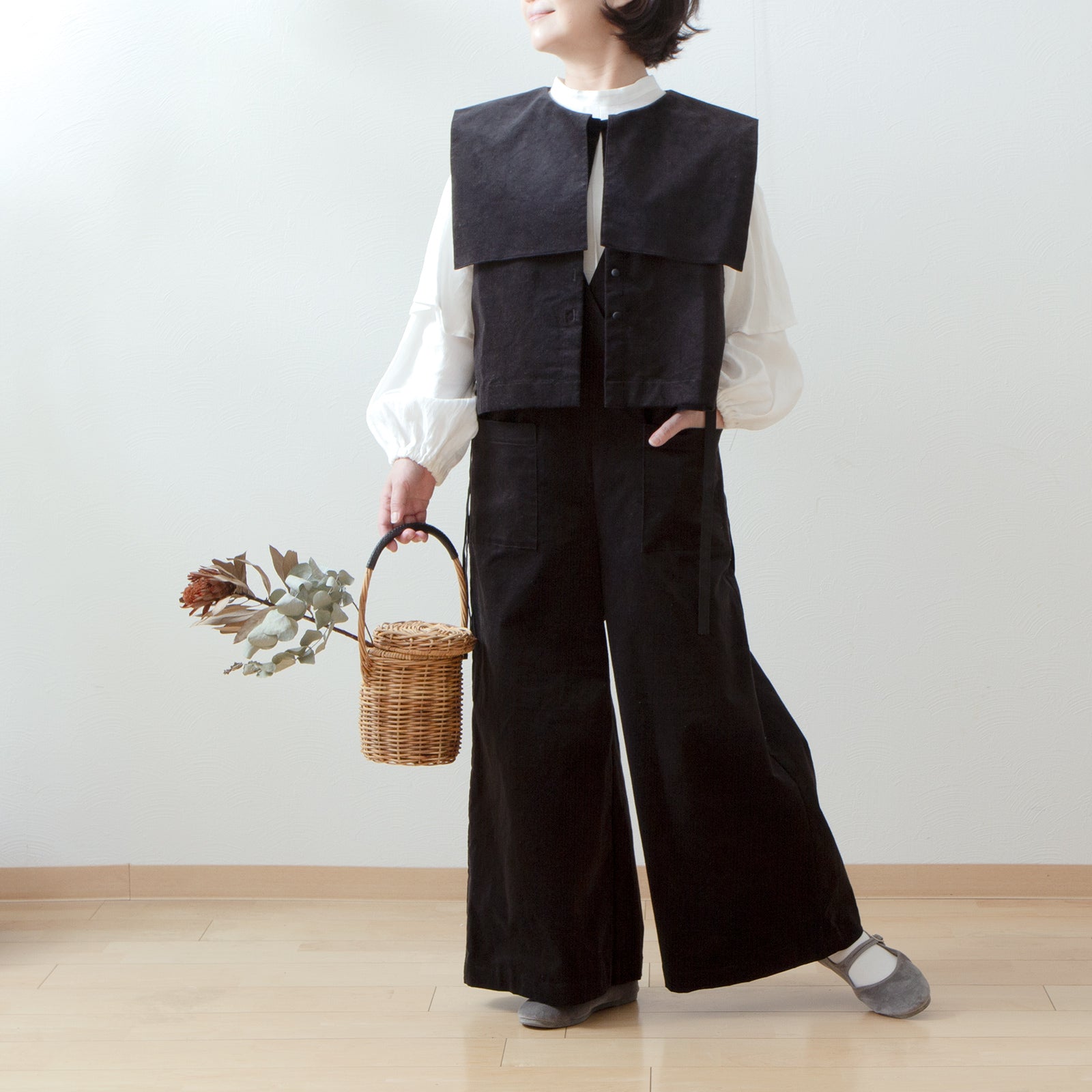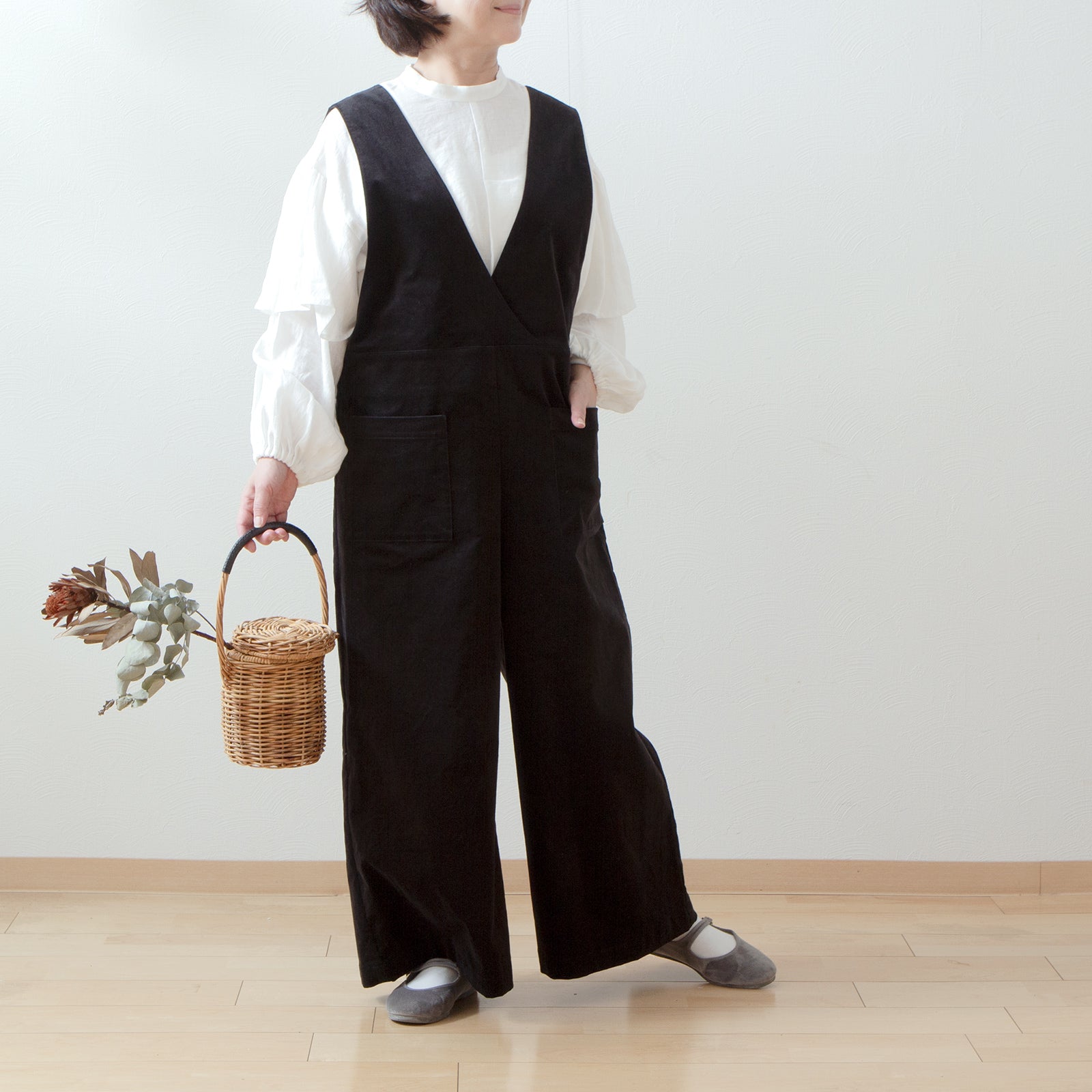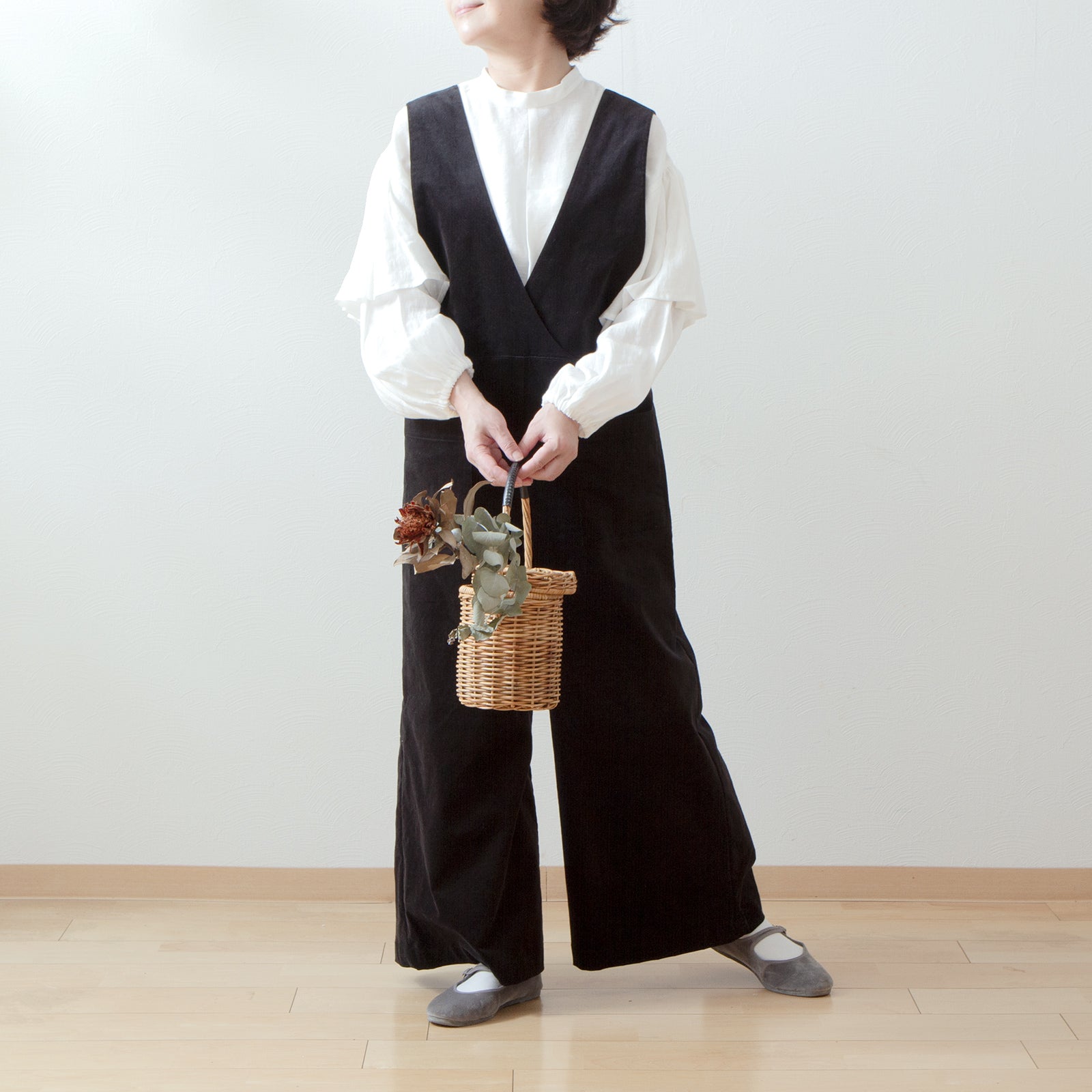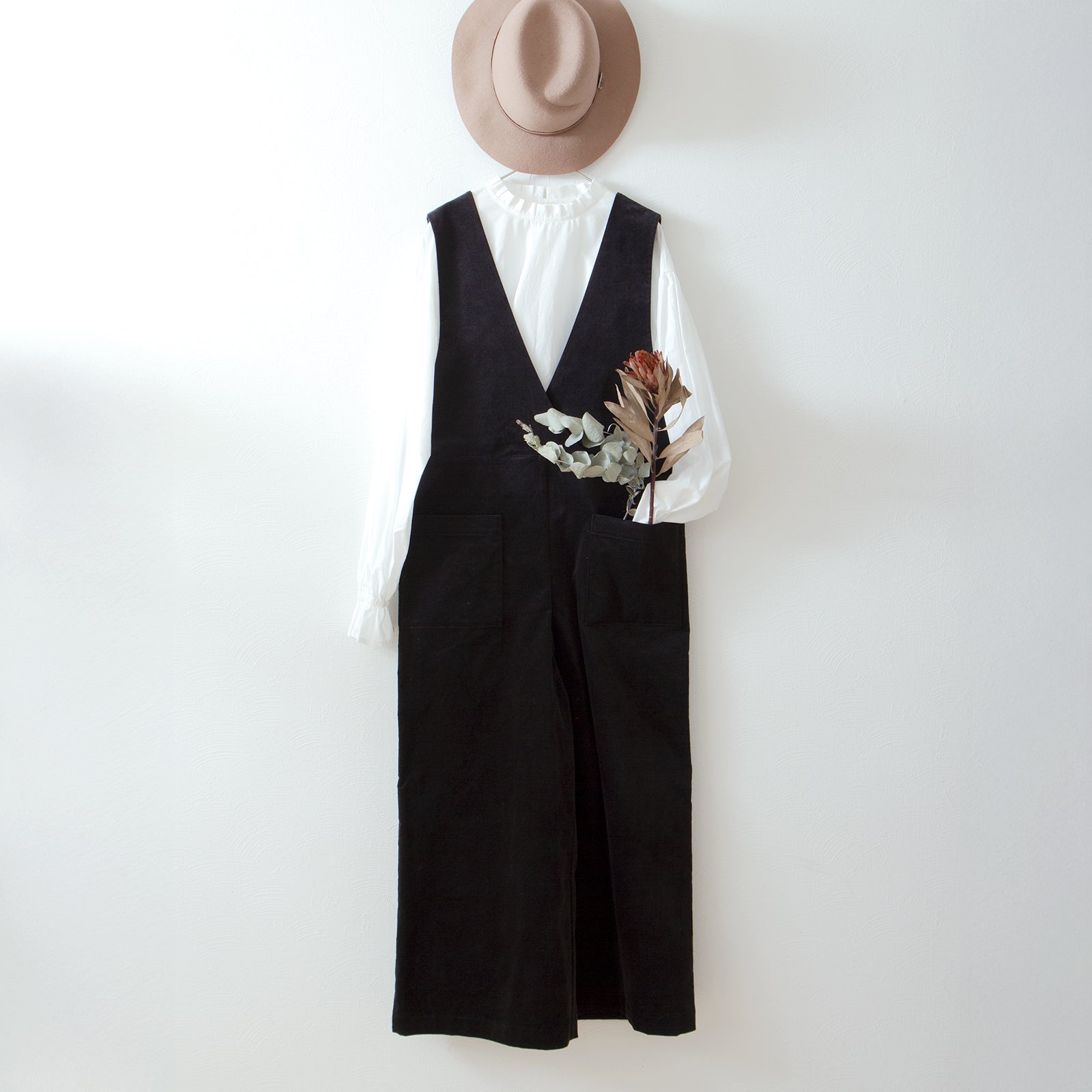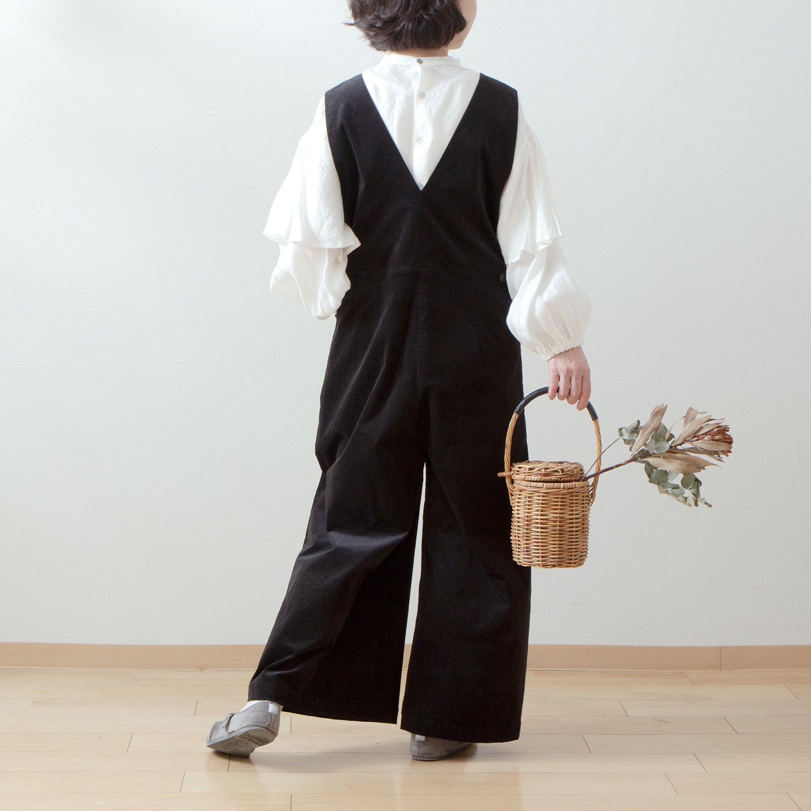 前身採用環繞式設計,後身採用深 V 領設計,使工裝褲看起來精緻而又不會過於休閒。