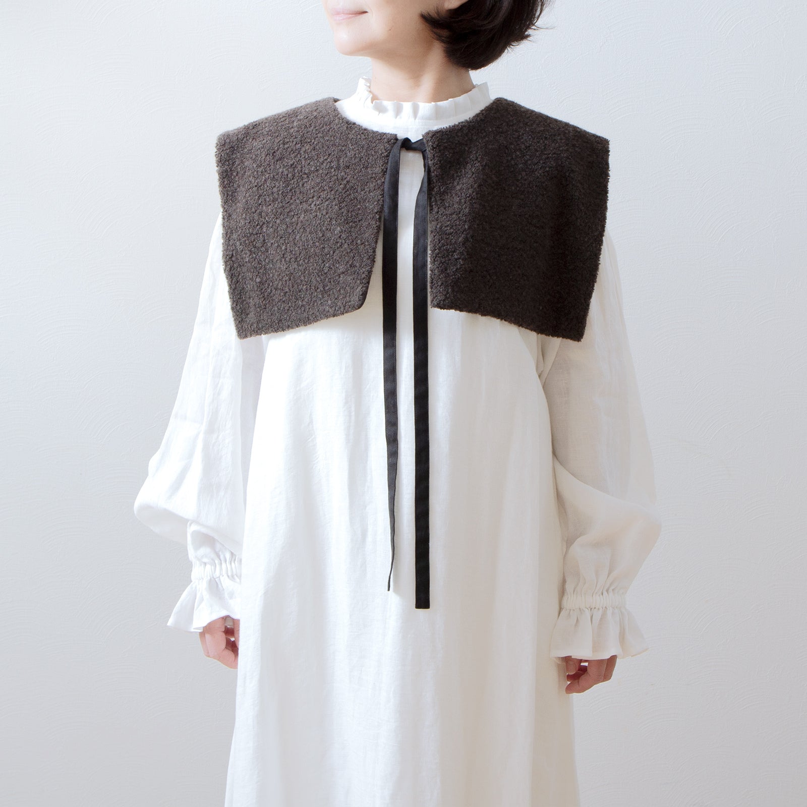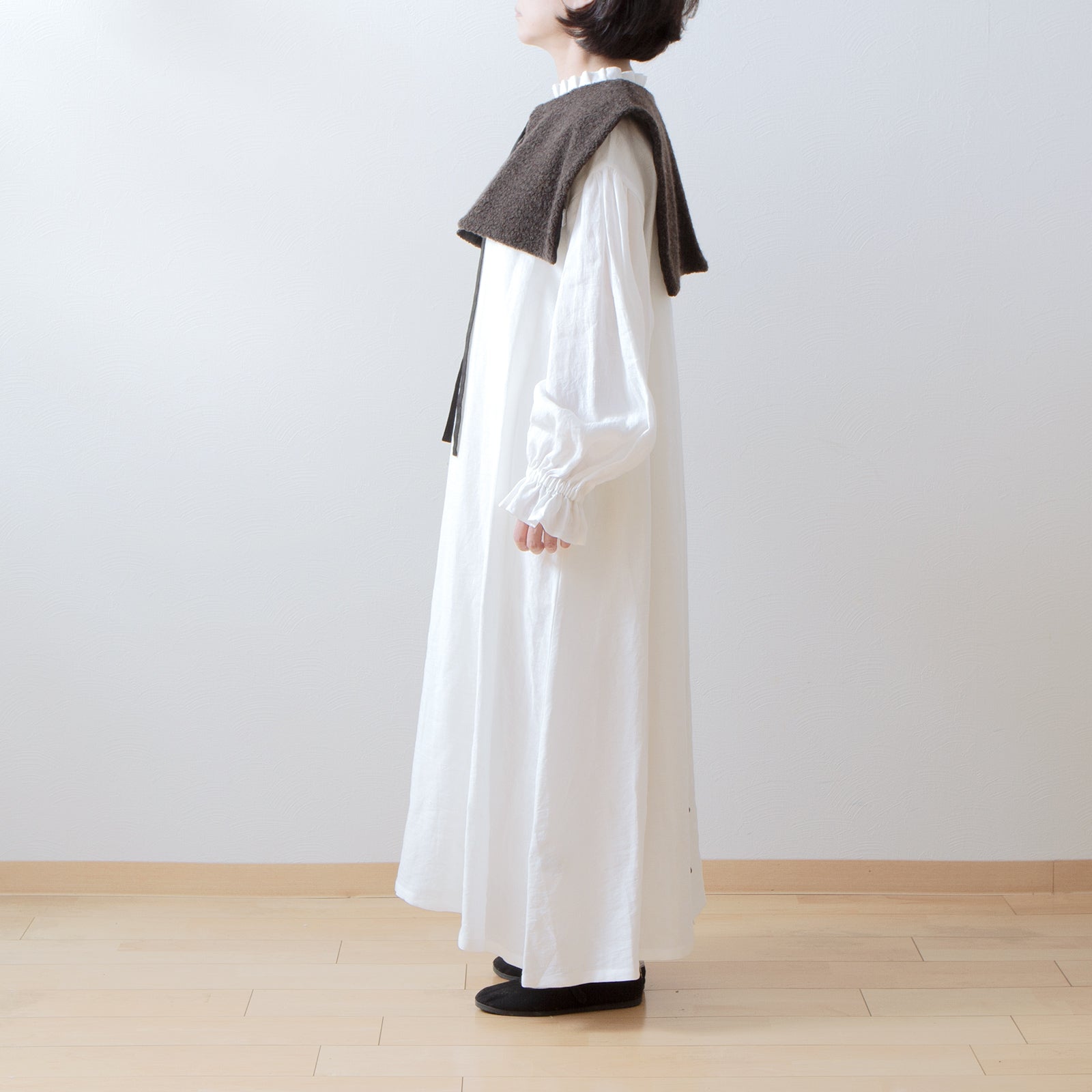 當您將褶皺荷葉邊領連身裙穿在內層時,領子和袖口就會成為華麗的點綴。