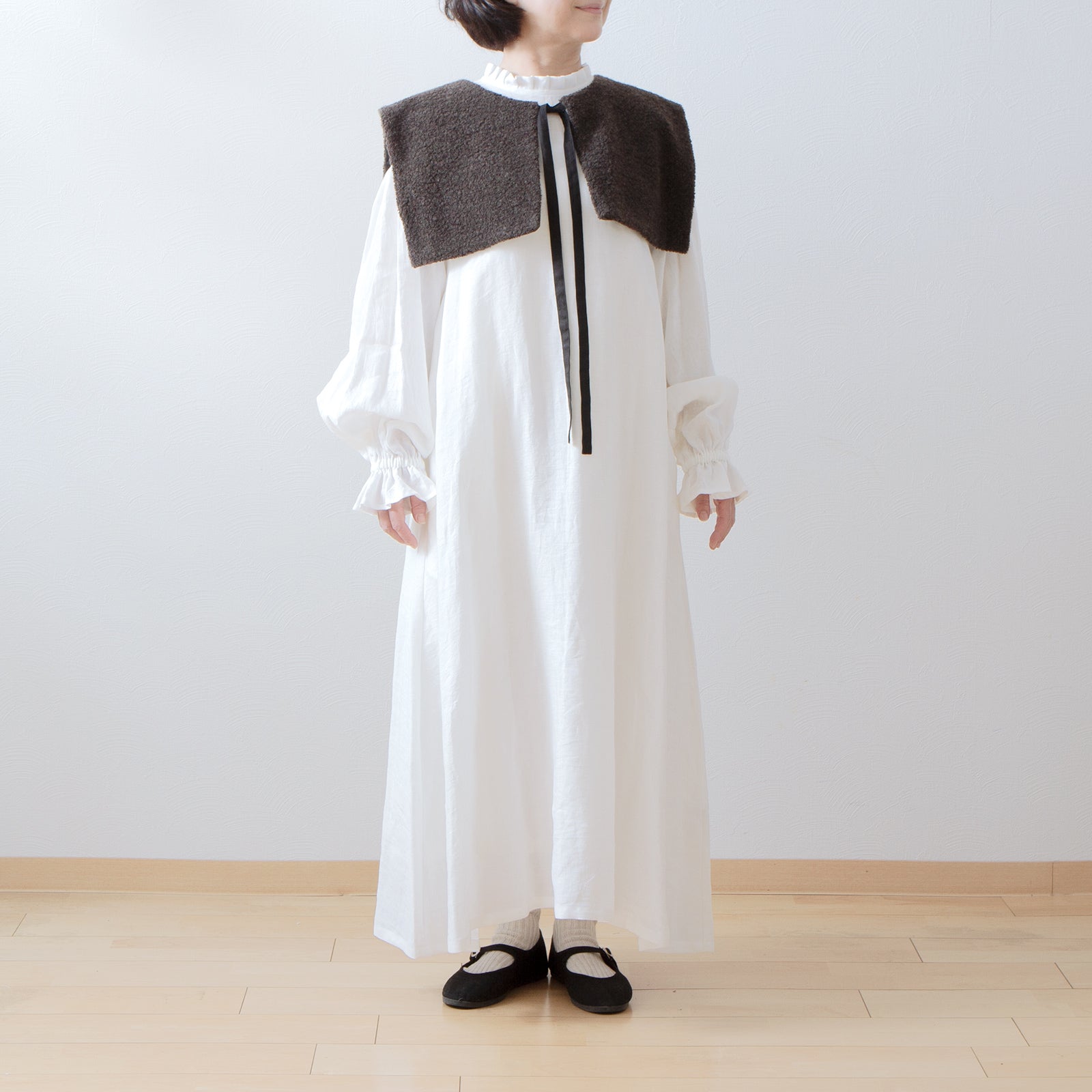 側面的絲帶採用相同的亞麻棉材料製成,增添了少女氣息,突出了服裝的特色。
