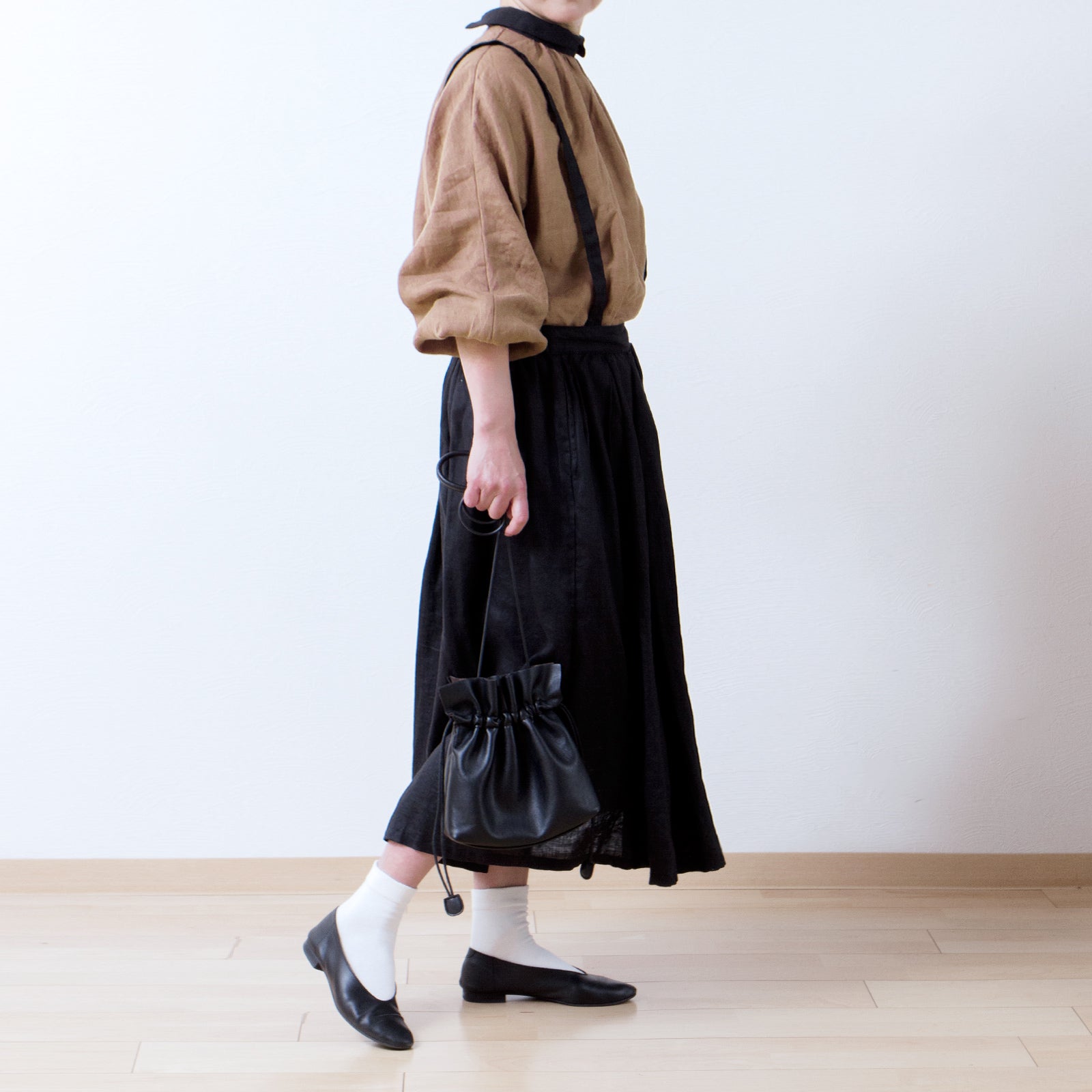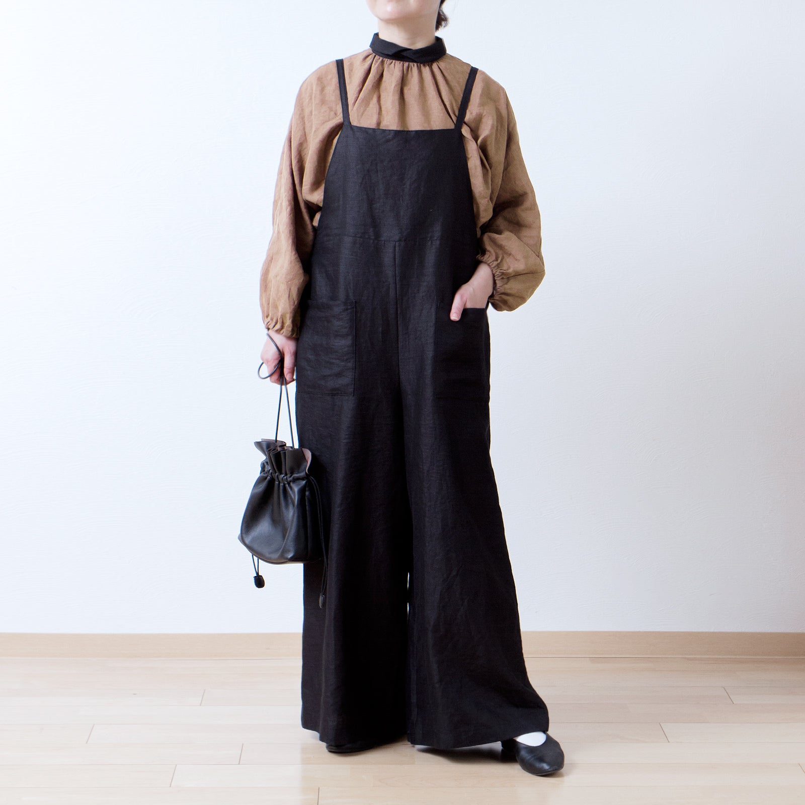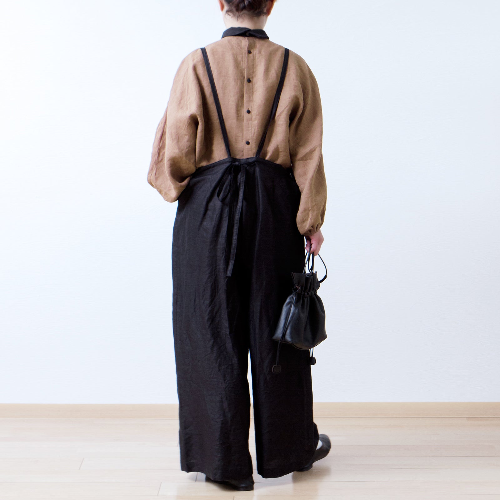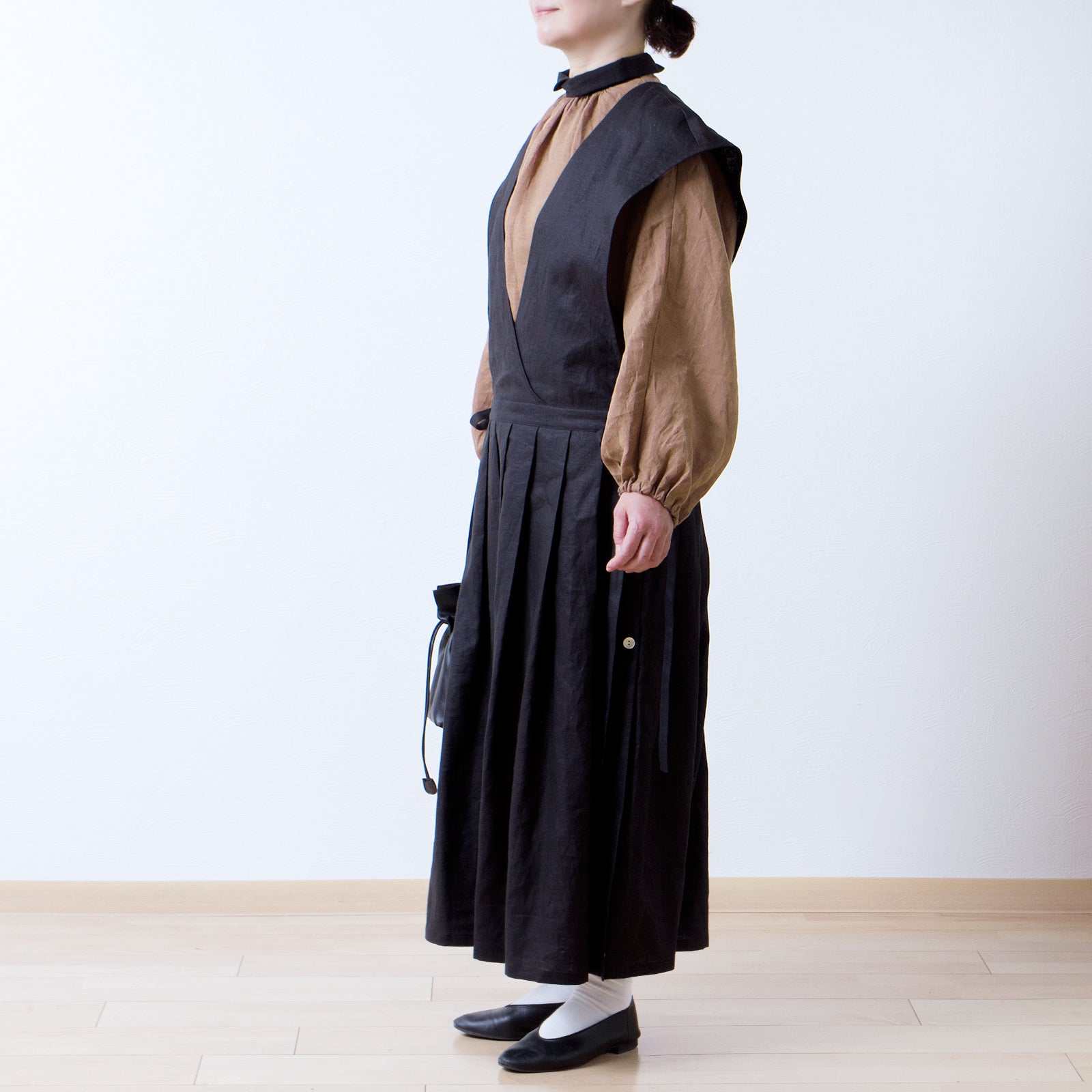 牧師領優雅可愛,適合成人穿著。後背扣,寬袖法式亞麻襯衫,3/4袖/駝色牧師領